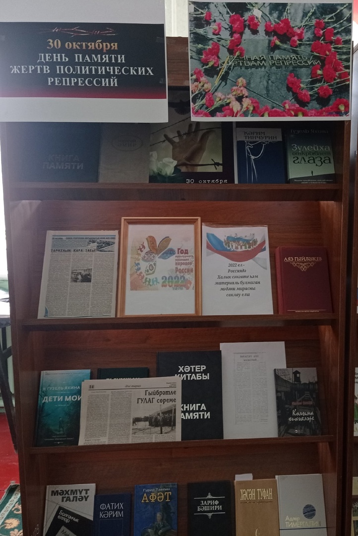 30 октября, в День памяти жертв политических репрессий, в Кзыл Яланской сельской библиотеке состоялся час памяти «Вечная память о погибших». Дала небольшую историческую справку об установлении Дня памяти жертв политических репрессий. А потом рассказала читателям о том, что этот день памяти – напоминание нам о трагических страницах в истории России, когда тысячи людей были необоснованно подвергнуты репрессиям, обвинены в преступлениях, отправлены в исправительно-трудовые лагеря, в ссылку, лишены жизни.
