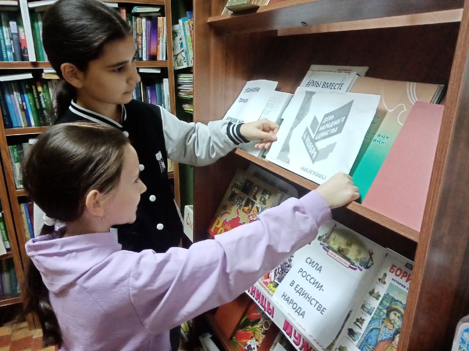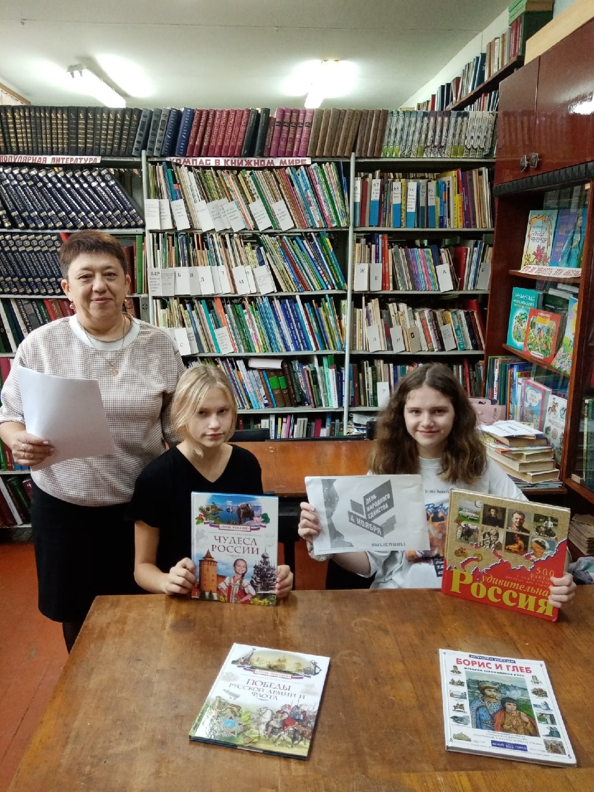Накануне празднования в городской библиотеке филиал №1 прошел исторический час «Сила России –в единстве народа», Учащиеся 8-го класса средней школы №5 совершили экскурсию в историческое прошлое Руси, ознакомившись с событиями 400-летней давности, послужившими причиной рождения праздника Народного Единства. Библиотекарь рассказала, что именно 4 ноября 1612 года два русских героя — Кузьма Минин и Дмитрий Пожарский — изгнали из Московского Кремля польских захватчиков, тем самым положив конец тридцатилетнему периоду, который историки называют Смутным временем. ,Мы все должны люди разных национальностей должны объединиться .. Только в братстве и тесном единении друг с другом можно преодолеть любые испытания. В ходе мероприятия старшеклассники получили много полезной информации об истории праздника и с большим интересом ознакомились с книжной выставкой «Истории немеркнущие строки».