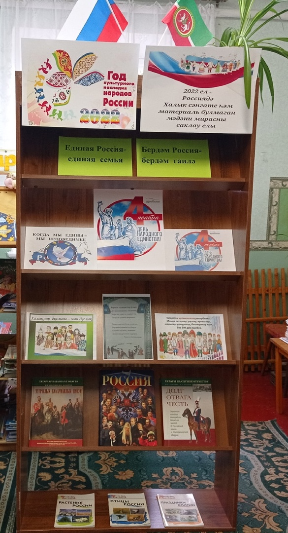 День народного единства – это дань памяти нашей славной истории. А книги – это хранители истории и культуры. И в преддверии праздника в Кзыл Яланской библиотеке оформлена выставка «Единая Россия-единая семья» и проведён информационный час. Познакомиться содержанием выставки можно в библиотеке.