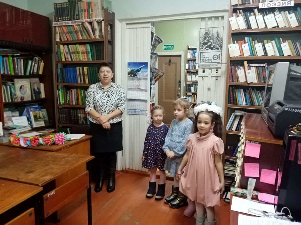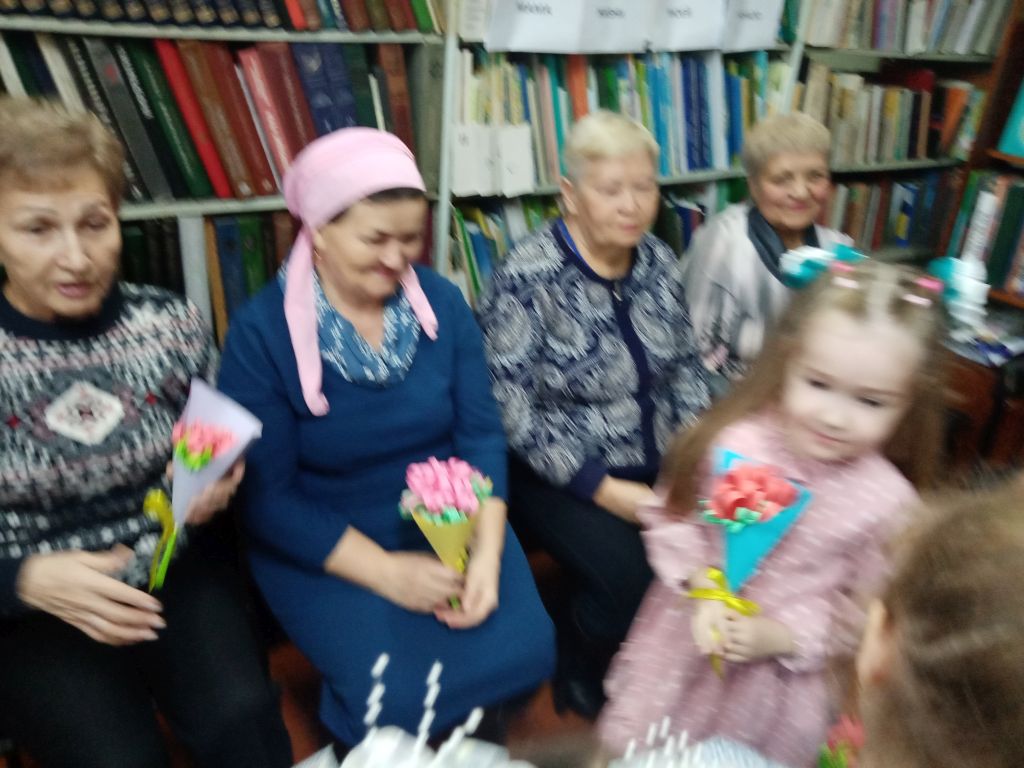 На мероприятию пригласили своих читателей мам. Поздравить мам пришли дети из детского сада №17.Они рассказали стихи, спели песни и подарили букет цветов которые сделали своими руками . А потом мамы тоже спели песни, танцевали. В конце пили чай вкусными пирогами.