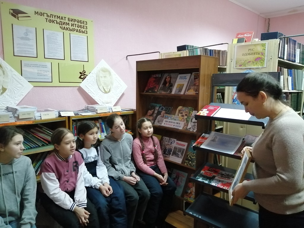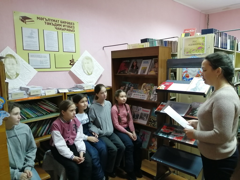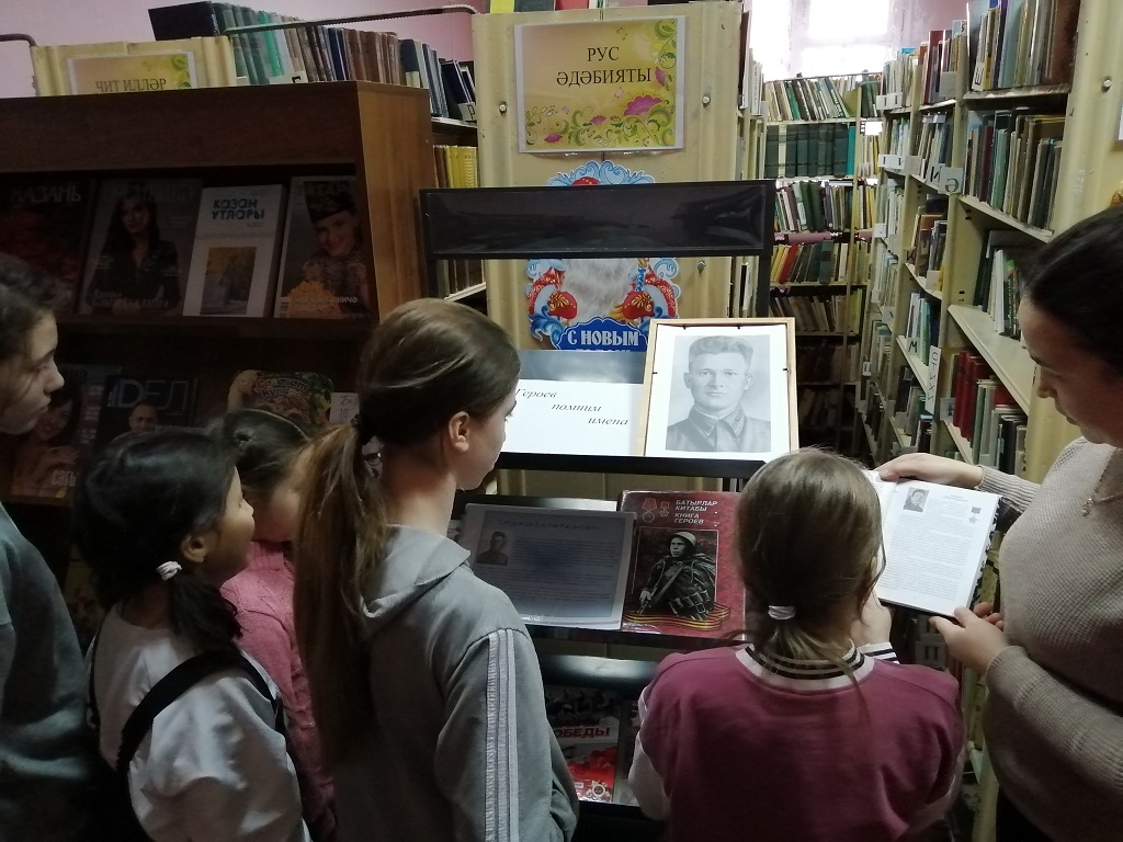 Ребята послушали об истории праздника, о празднике нашей боевой славы, наших ратных традиций и воинской доблести. Библиотекарь показала книги «Память», «Они вернулись с Победой», о героях ВОВ, о детях-героях, о подвиге нашего народа. Дети с большим интересом слушали о герое-земляке Ситдикова Касыйма Хасановича В завершение мероприятия отвечали на вопросы викторины о том, кто такие герои, что такое подвиг и Отечество.