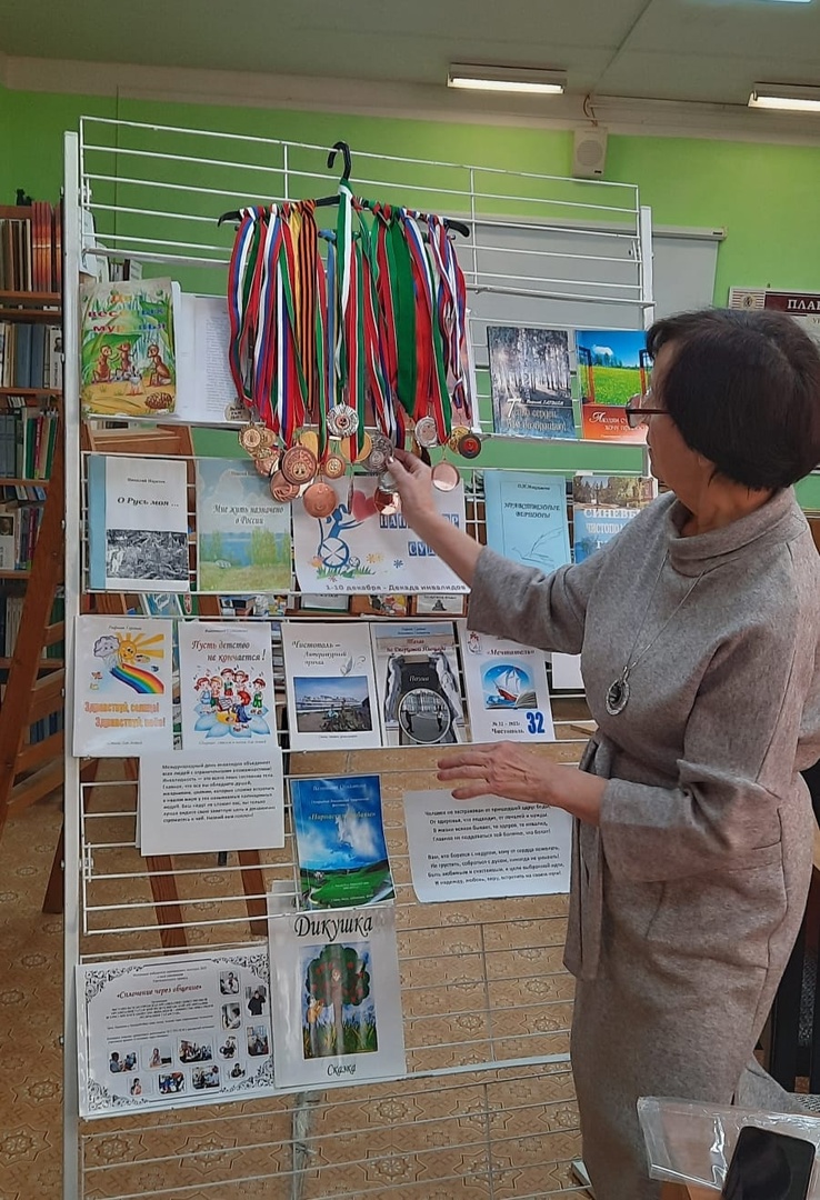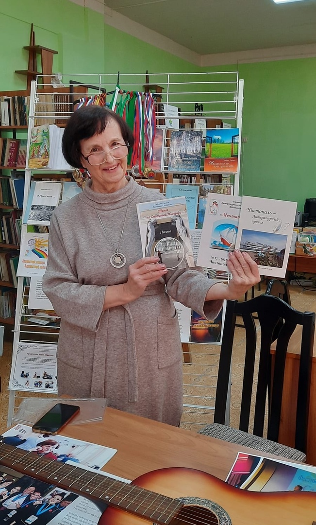8 декабря в библиотеке Школы № 4, в рамках декады инвалидов, состоялась встреча учащихся 4 а и 4 б с автором – исполнителем, издателем, хореографом, победителем международных, всероссийских, республиканских конкурсов и фестивалей, членом лито «Ступени» Валентиной Солдатовой. К мероприятию библиотекарем Ольгой Жильцовой была оформлена книжная выставка «Наперекор судьбе», которая вместила в себя книги чистопольских поэтов. Валентина Георгиевна рассказывала о себе и о людях с инвалидностью, говорила о доброте и милосердии, показывала свои медали, трогательно исполняла авторские песни и стихи, подарила в школьную библиотеку книги, фотографии и альманах. Дети задавали вопросы и ещё попросили рассказать о незрячем поэте Рифкате Гардиеве. Встреча получилась очень добрая, дети узнали о том, кто такие инвалиды, как они живут, чем занимаются и как они подают здоровым людям пример жизнелюбия.