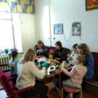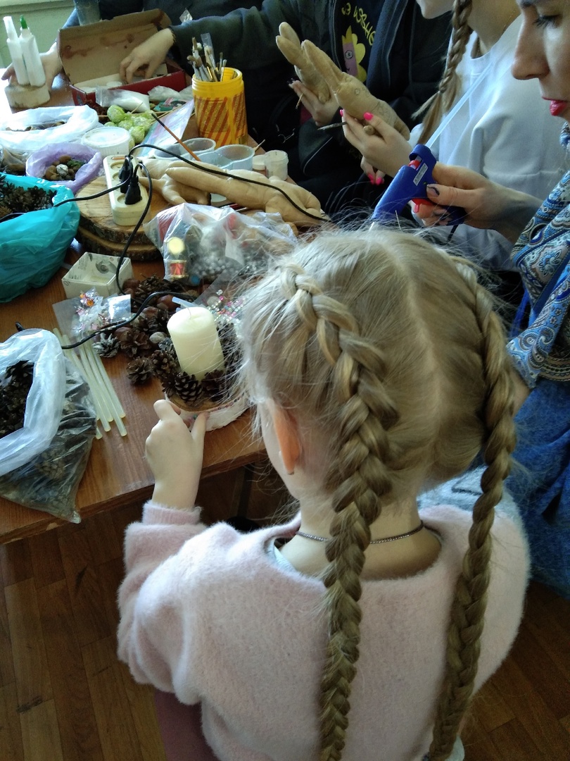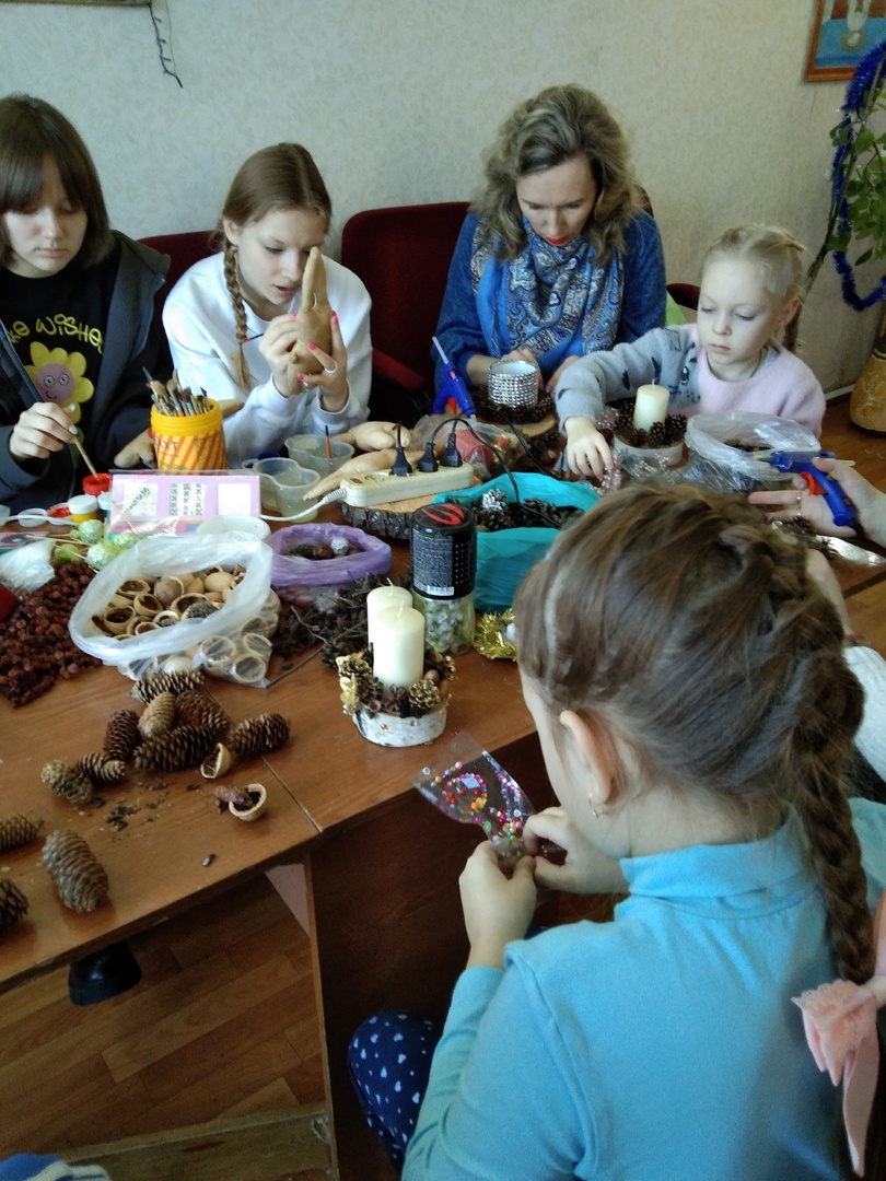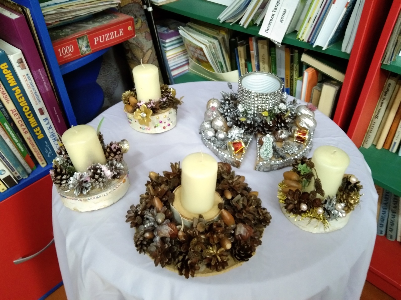 Методист городской библиотеки – филиала № 7 Елена Быкова в зимние каникулы — 4 января провела два мастер класса «Новогодний подсвечник» и «Кофейная игрушка» для участников литературно-творческого семейного клуба «Свеча» и продолжила работу по программе – Семейный досуг выходного дня. Мамы со своими детьми мастерили новогодний подсвечник из природного материала и раскрашивали акриловыми красками тряпичных кофейных зайчат.