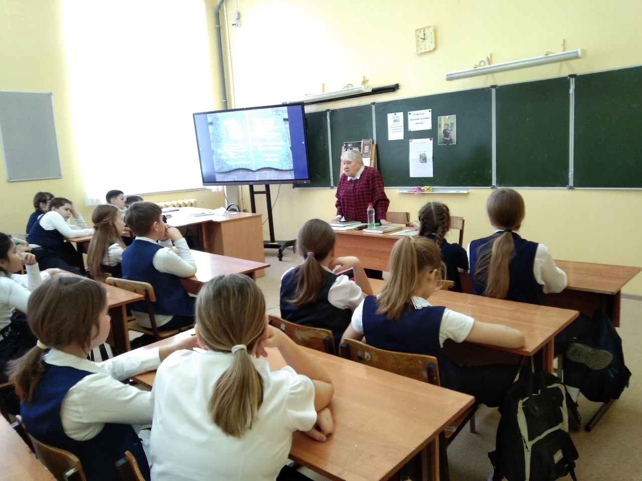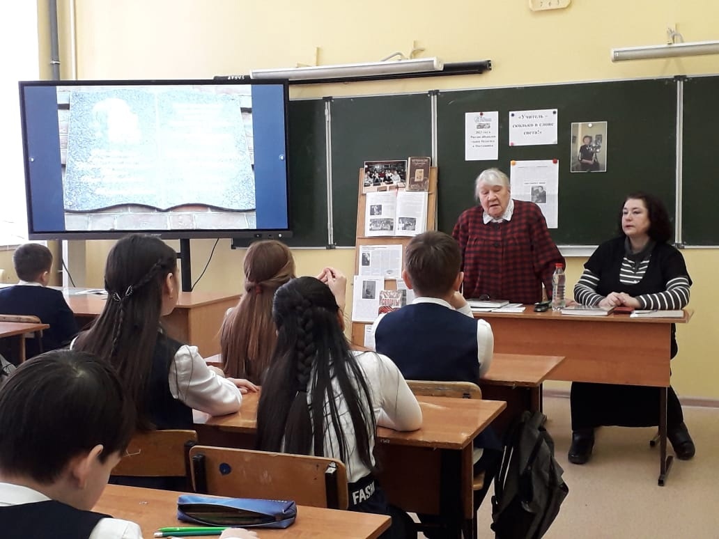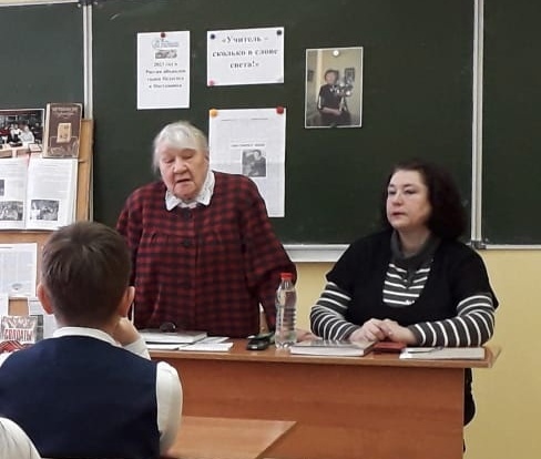 Школе № 1 в 5 б классе членами лито «Ступени» было проведено мероприятие «Она вела нас по дороге знаний» к году педагога и наставника.