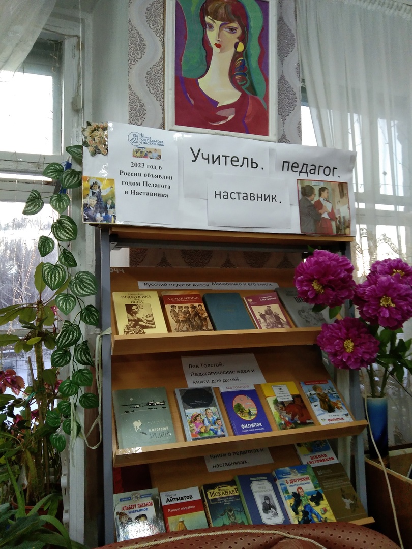 Сегодня в городской библиотеке-филиал №7 была оформлена книжная выставка «Учитель, педагог, наставник» потому, что 2023 год в России был объявлен годом педагога и наставника. Выставка состоит из трёх разделов. Первый – « Русский педагог Антон Макаренко и его книги». На книжной полке представлены роман А. Макаренко «Педагогическая поэма» и педагогический труд «О воспитании». Второй раздел – «Лев Толстой. Педагогические идеи и книги для детей». На полке расставлены самые лучшие книги для детей и книга «Для детей», в которой представлен материал о деревенской школе Льва Толстого. Третий раздел — «Книги о педагогах и наставниках». На полке разместились художественные книги для детей и подростов. Представлены авторы: А. Лиханов «Избранное», В. Распутин «Уроки французского», В. Драгунский «Повести и рассказы», Ф. Искандер «Тринадцатый подвиг Геракла», Ч. Айтматов «Первый учитель», М. Прилежаева «Юность Маши Строговой».
