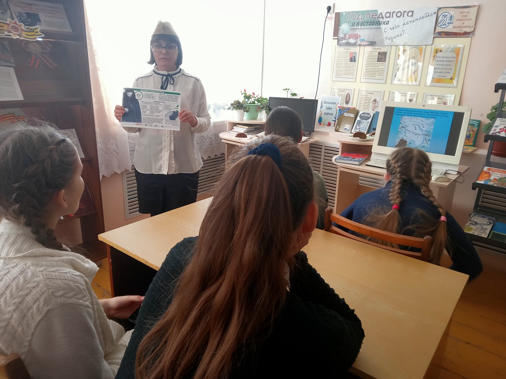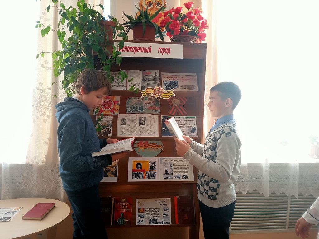 Самая трагическая страница в истории Ленинграда – это блокада, в которой оказалось около 3 миллионов человек. 900 дней ленинградцы мужественно выносили все страдания, выпавшие на их долю. Чувашско-Елтанская сельская библиотека провела урок мужества «900 дней мужества». Учащиеся совершили виртуальное путешествие в 1941–1944 годы, побывали в блокадном городе, узнали о героической защите блокадного Ленинграда, о тяготах, павших на плечи его жителей, о норме хлеба блокадника, о том, что значили в то время хлебные карточки, о Тане Савичевой, о Дороге жизни через Ладожское озеро. В ходе мероприятия прозвучали стихи Ольги Берггольц «Ленинградская поэма», Сергея Смирнова «Таня Савичева» и других русских поэтов. К мероприятию была подготовлена тематическая книжная выставка «Непокоренный город».