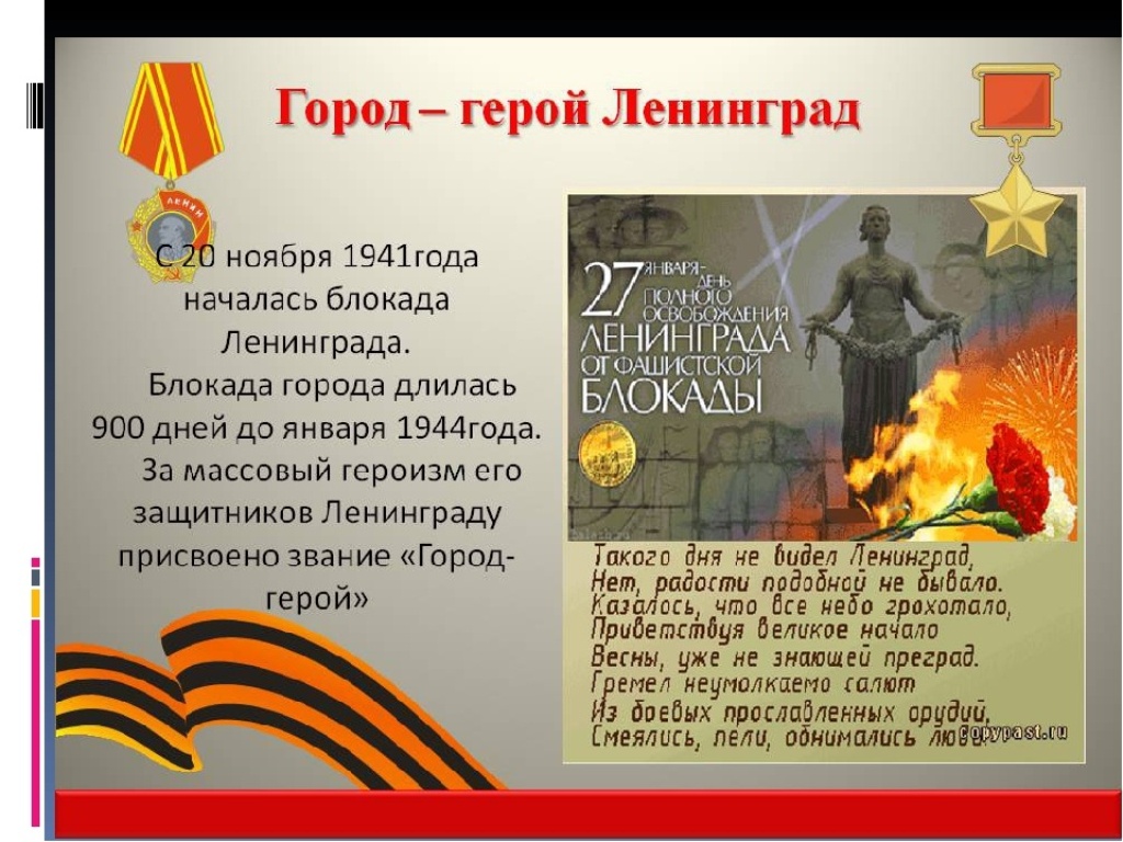 Ежегодно 27 января в нашей стране отмечается День полного освобождения Ленинграда от фашистской блокады. Это самая страшная веха той войны. 900 дней героического сопротивления. Голод, холод, болезни, смерть.