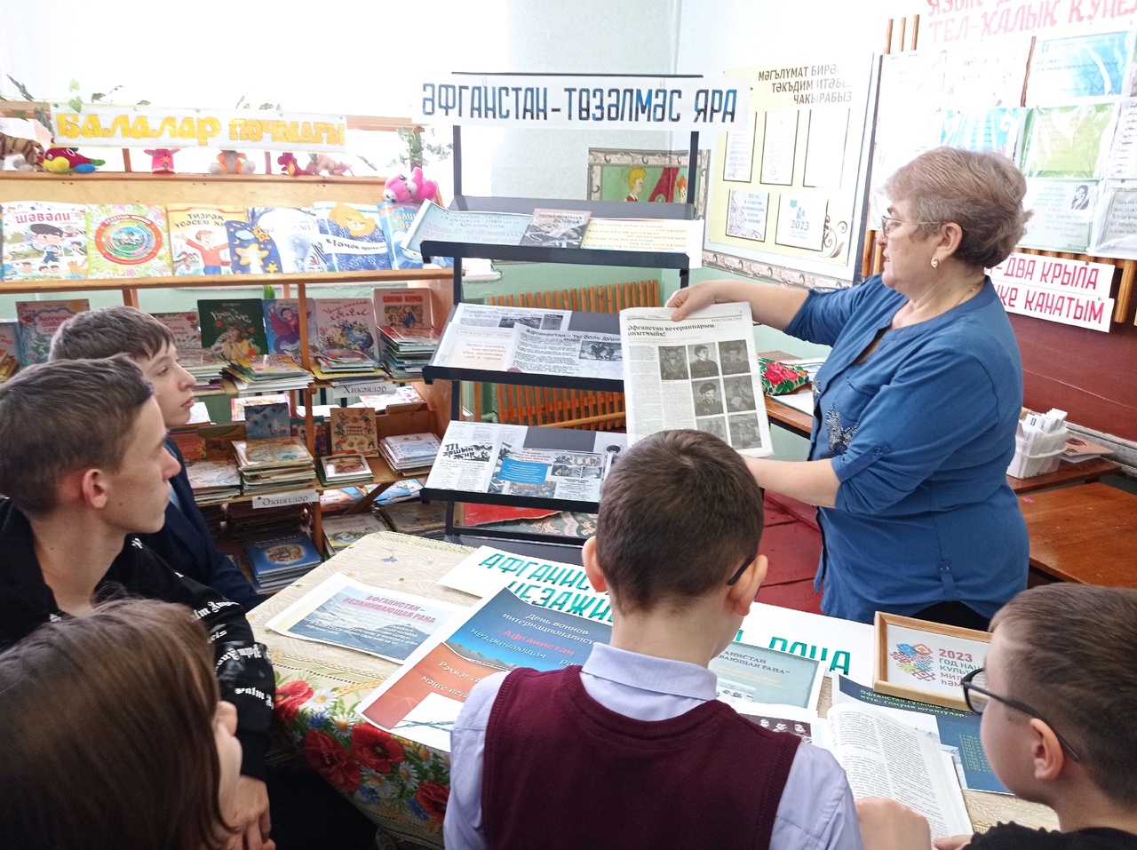 Ко дню вывода советских войск из Афганистана в Кзыл Яланской сельской библиотеке проведён урок мужества «Эхо афганской войны». Оформлена выставка «Афганистан незаживающая рана». На выставке были личные некоторые вещи нашего земляка воина афганца Фаргата Фатхутдинова. Рассказала о нём, о его подвигах, читали о нём из газетных материалов, чтобы ребята знали о своём земляке, помнили и гордились.