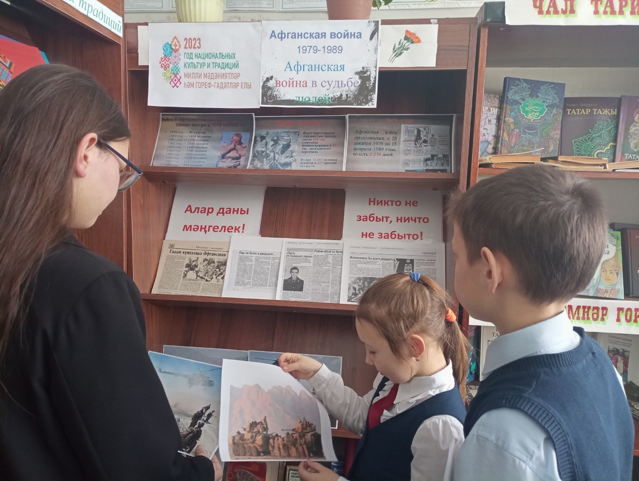 На уроке мужества «Афганская война в судьбе людей» учащиеся Исляйкинской сельской библиотеки познакомились с историей Афганской войны, узнали о причинах начала ни кем необъявленной Афганской войны и ее продолжительности, о невосполнимых потерях советских войск, о наших земляках, которым судьба предначертала жестокую участь — сгореть в огне чужой войны и которым уже никогда не суждено переступить порог родного дома. Минутой молчания почтили память о всех павших наших солдат и офицеров, отдавая дань уважения тем, кто проявил высочайшую силу духа, самоотверженность, героизм, выполняя боевой долг.