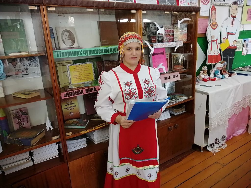 В рамках празднования Дня родного языка и 175-летия со дня рождения чувашского просветителя Ивана Яковлева, методист Нижнекондратинской сельской библиотеки филиал №21 провела литературный час «Чăваш çырулăхĕн çăлкуçĕ».
