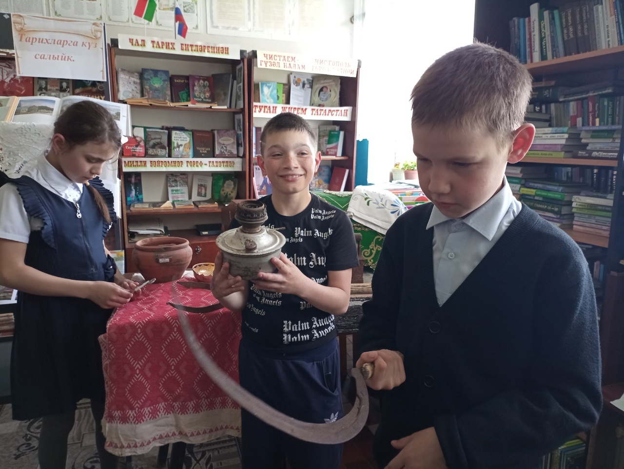 В Исляйкинской сельской библиотеке прошло культурное путешествие «Тарихларга күз салыйк». Библиотекарь познакомила учащихся с историей праздника и рассказала о том, как возникали и распространялись музеи по всему миру на протяжении многих столетий, о том, что музеи бывают самые разные. Продолжая путешествие, читатели смогли перенестись в самое настоящее хранилище, к экспонатам из музея. Здесь они могли все потрогать своими руками.