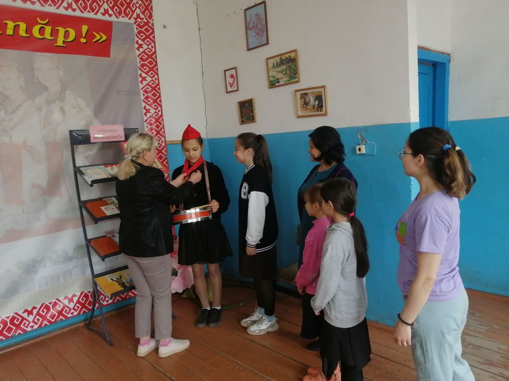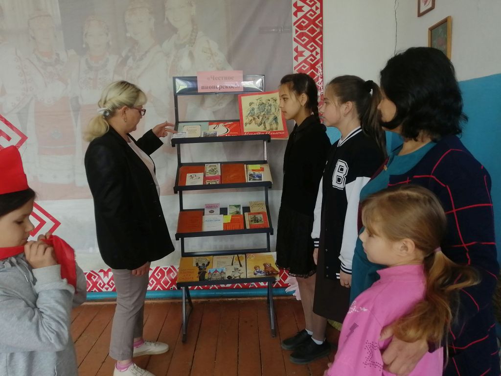 На мероприятии звучали пионерские песни, оформлена книжная выставка «Честное пионерское»