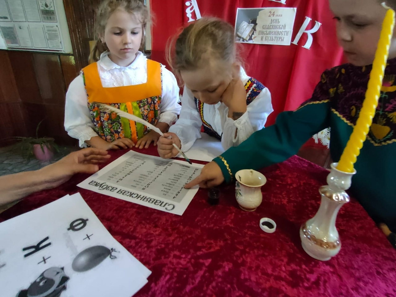 Корни родословного древа письменности уходят в глубь столетий. Чтобы стать по-настоящему образованным человеком, нужно знать не только общую историю, но и историю нашей письменности. На мероприятии методист библиотеки рассказала о становлении письменности, о святых Кирилле и Мефодии – основателях славянской письменности. Ребята познакомились со старославянским алфавитом и попробовали написать буквы пером.