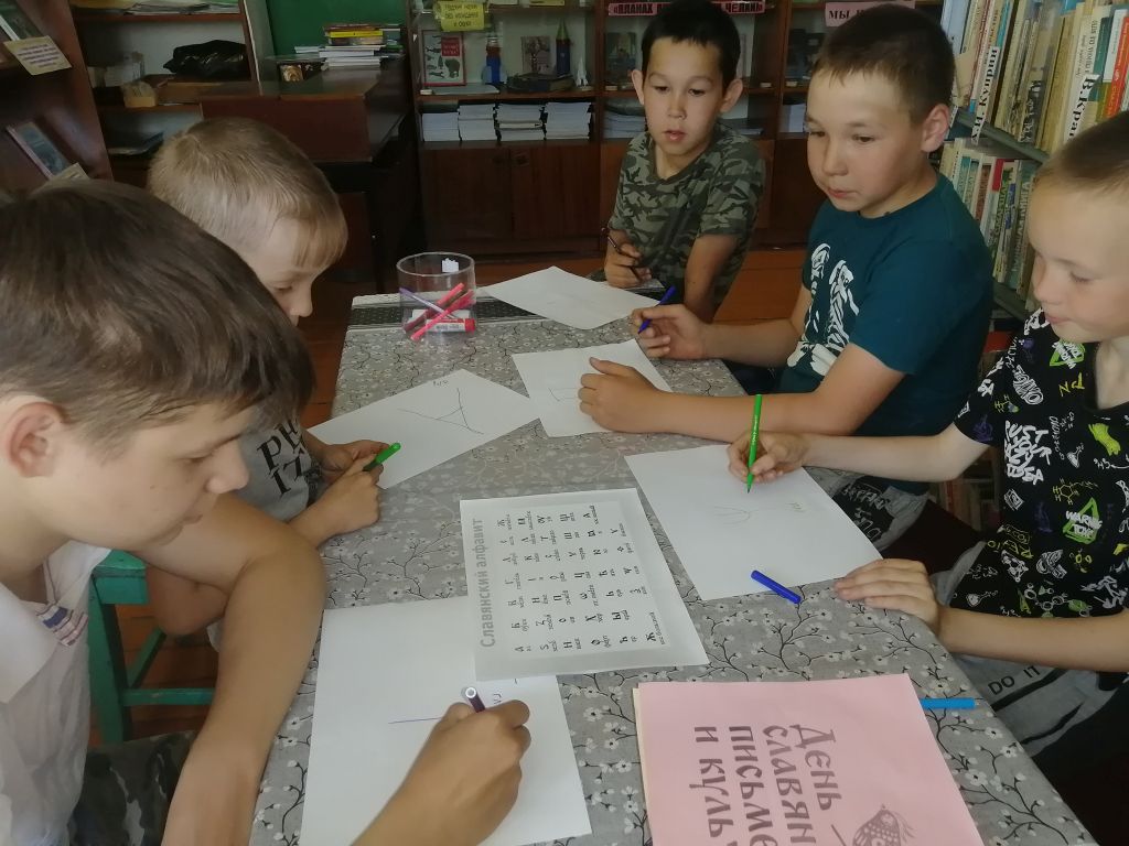 Нижнекондратинская сельская библиотека для читателей провела час истории «Моя азбука». Рассказала об истории создания славянской письменности. Присутствующие узнали о том, что такое книга, как ее раньше оформляли. Ребята с интересом слушали рассказ о том, как учились их сверстники раньше; узнали, чем отличалось обучение грамоте в старину от обучения современного. Узнали много интересного о происхождении букв славянского алфавита, об основателях первой азбуки «кириллицы» — Кирилле и Мефодии. Участвовали в конкурсах: «Назови слово», «Угадай букву», «Наборщик». Экскурс в историю сопровождается показом слайд-презентации «Славянских букв серебряная россыпь». В заключение Надежда Викторовна напомнила читателей о том, что мы должны помнить о ценностях языка и культуры и должны сберечь их для будущего поколения.