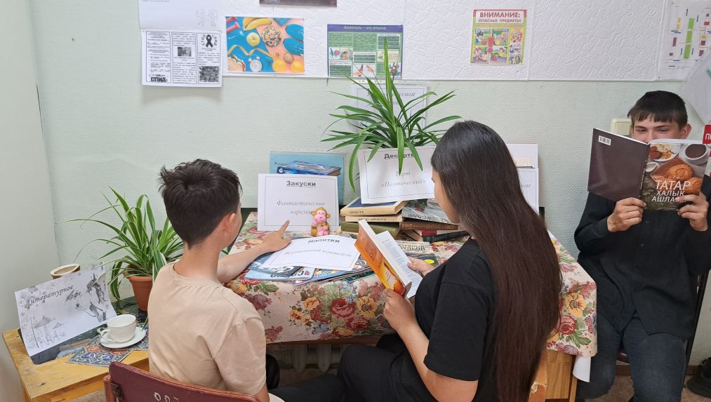 Кафе в библиотеке? Разве это возможно? Возможно, если вспомнить, что книги- это тоже пища, пища для ума и для души. Юные читатели Татарско- Елтанской библиотеки посетили литературное кафе «Извольте прочесть» в рамках проведения Библионочи. Каждому гостю предлагалось меню из книжных блюд. Все «блюда-книги» – новые, очень интересные – расположились на книжной выставке. Участники расположились за столикам. Как в настоящем кафе на столе стояли меню. Фантастические нарезки состояли из фантастических книг разных писателей. Десерты- торт «Поэтический», книги русских поэтов. Были и напитки «Журнальный коктейль», конечно же, были представлены и татарские блюда, это книги татарских рецептов и другие детские, интересные, красочные книги. Кроме того, шеф-повар сообщил всем гостям, что в «Библиокафе» действует услуга «Блюдо на дом». Для этого нужно заказать любую понравившуюся книгу, взяв её домой. И такому совету последовали многие. Ребята дали наивысшею оценку литературному кафе – пять звёзд!