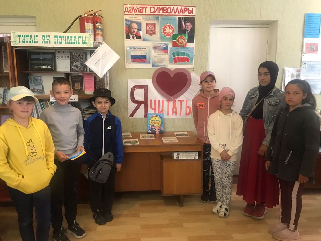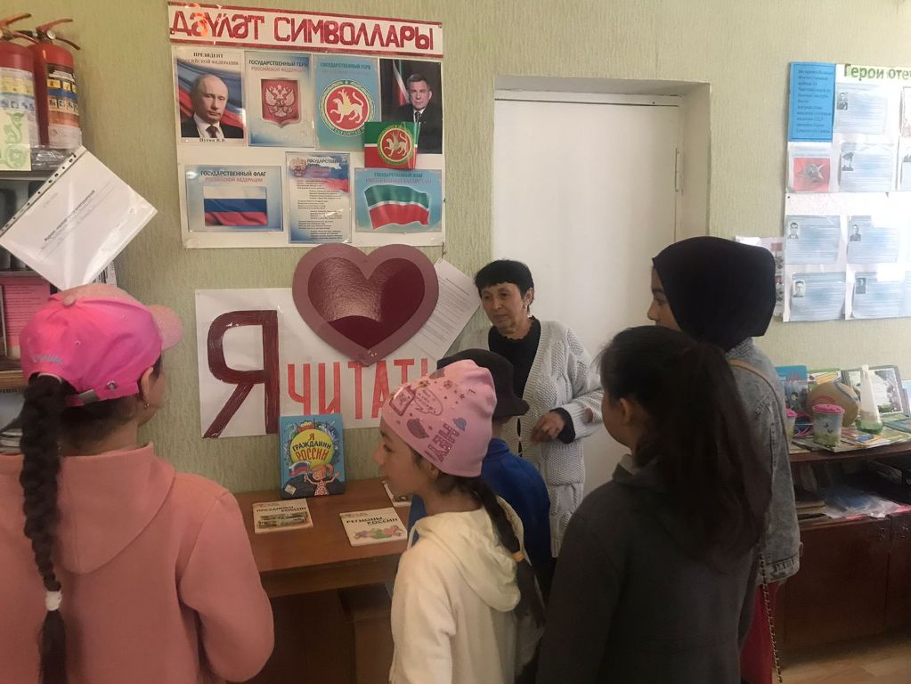 В честь дня России, Тат. Сарсазская сельская библиотека совместно с сотрудниками СДК организовали цикл мероприятий. Методист библиотеки детям рассказала, что Россия – это независимое государство, имеющее свою территорию, свой государственный язык, свои законы, своего всенародно избранного Президента. Была представлена наглядная информация о символах российской государственности — флаге, гербе и гимне. Школьники поделились знаниями об истории российского флага, о том, что в наше время означают цвета на его полотнище. Прослушали Гимн Российской Федерации. Подробно обсудили изображение государственного герба России.