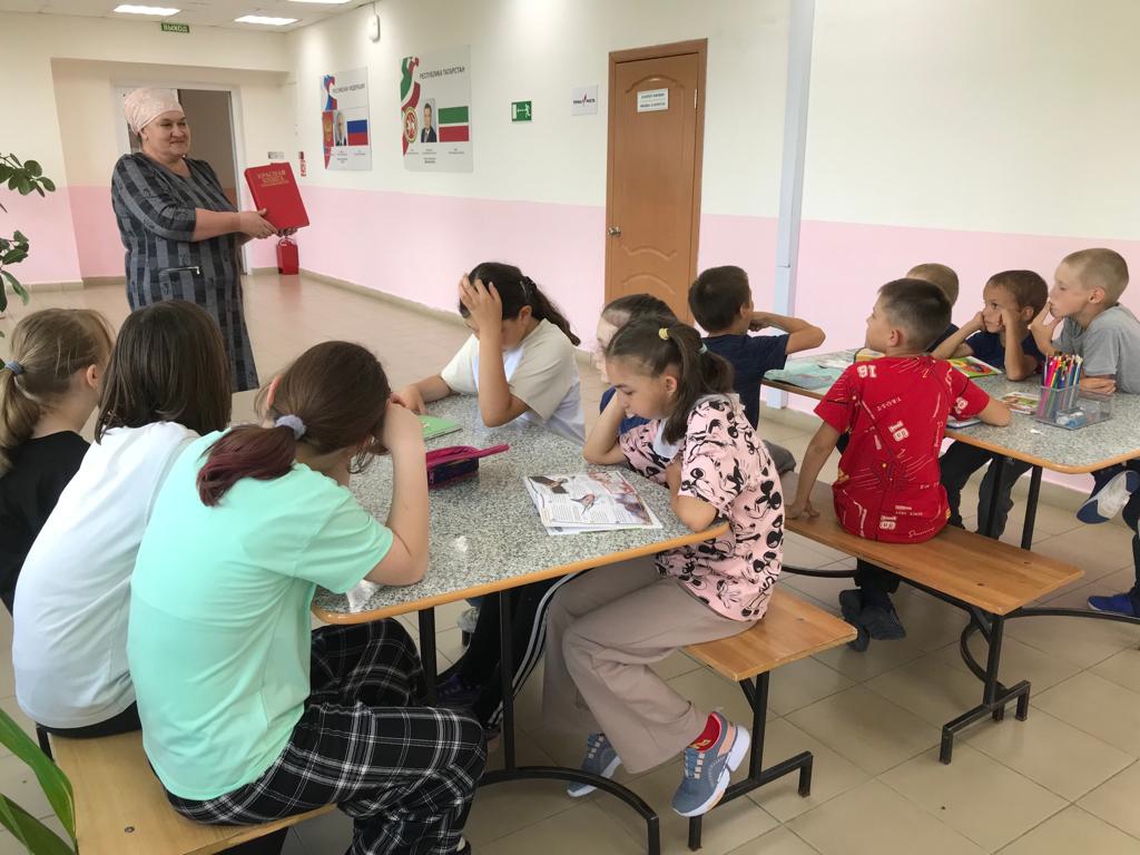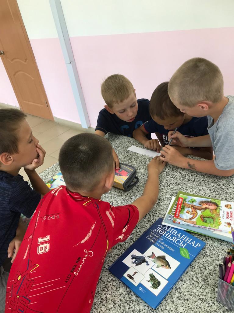 В рамках Дней защиты от экологической опасности для школьников, посещающих лагерь с дневной формой пребывания средней общеобразовательной школы Тат. Толкишская сельская библиотека провела экологическую игру-викторину «Дом под крышей голубой», которая позволяла проверить, насколько хорошо ребята знают природу, особенно природу своего края, научить их бережно относиться к окружающему миру, рационально использовать природные богатства. Участников ждали конкурсы: обитатели родного края, Знатоки родной природы, Зеленый друг, разговор о правилах поведения в лесу. Совершали путешествие по планете Земля. Игра состоялся из нескольких туров. В первом туре ребята ответили на вопросы, бросая кубик, где на каждой грани кубика был свой цвет, соответствующий своей теме: зелёный – растительный мир; синий – море и морские животные; жёлтый – птицы и т.д. Затем тур — «Четвёртый лишний», где нужно было вычеркнуть лишнее слово и объяснить почему?