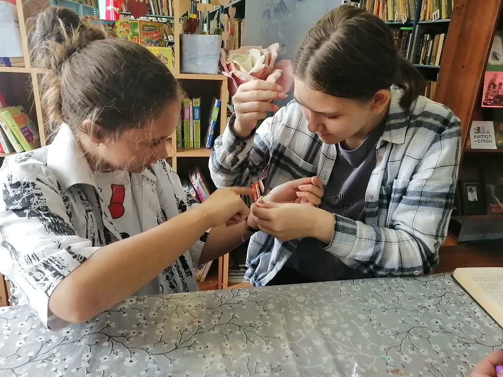 В конце участники мероприятия участвовали в мастер-классе: «С благодарностью к учителю», смастерили браслеты на резинке из бусин.