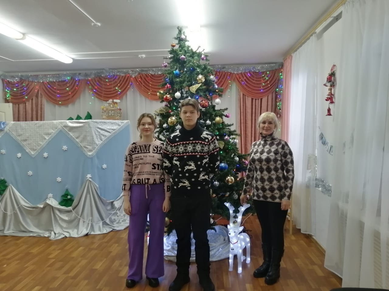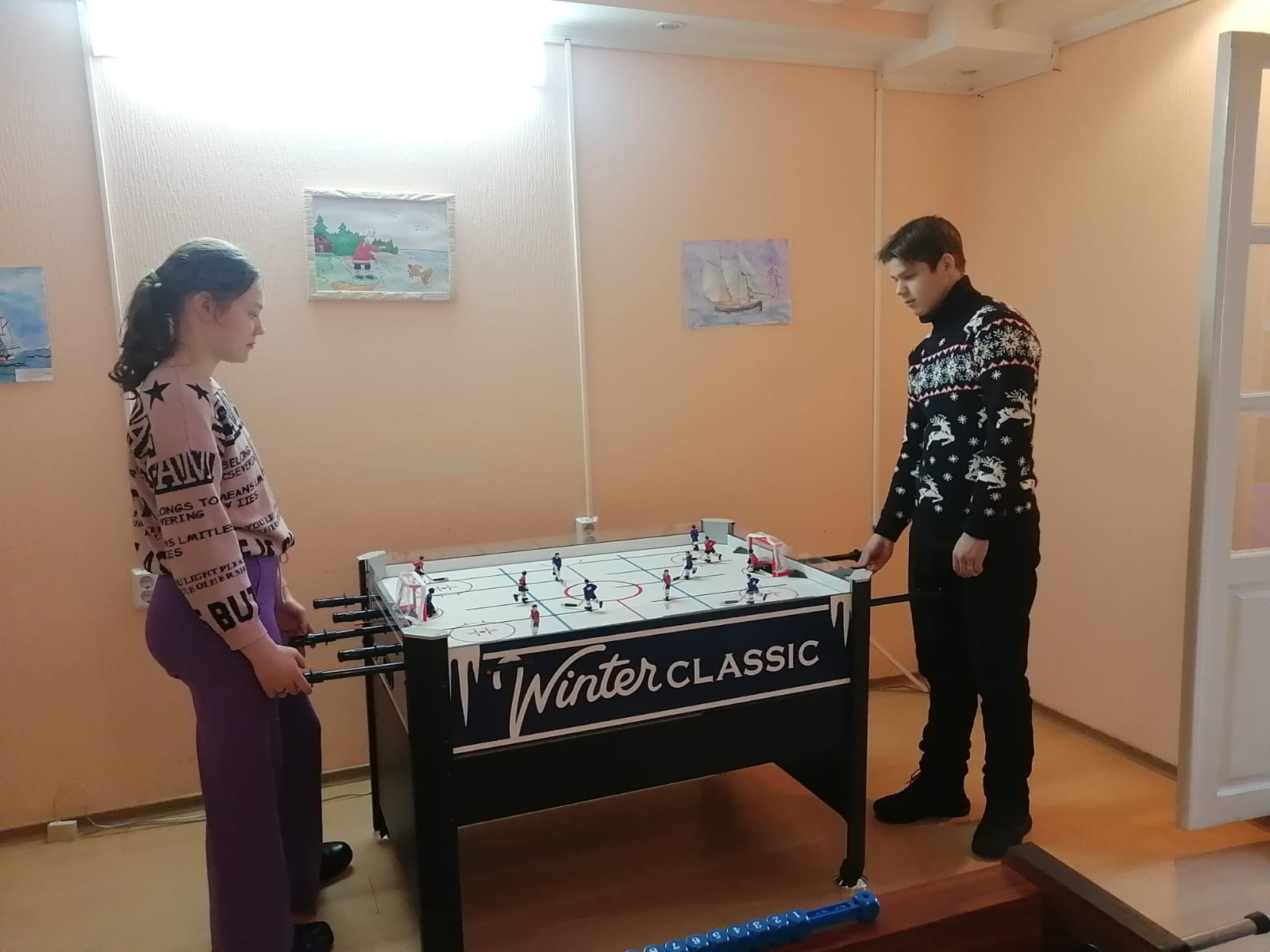 В прихожей оформлена, новогодняя фотозона. Можно посидеть на диване с интересной книгой. А в игровой комнате поиграли в хоккей. Как говорится «Аппетит приходит во время еды», и у наших учеников появилось желание посетить ледовый дворец спорта.