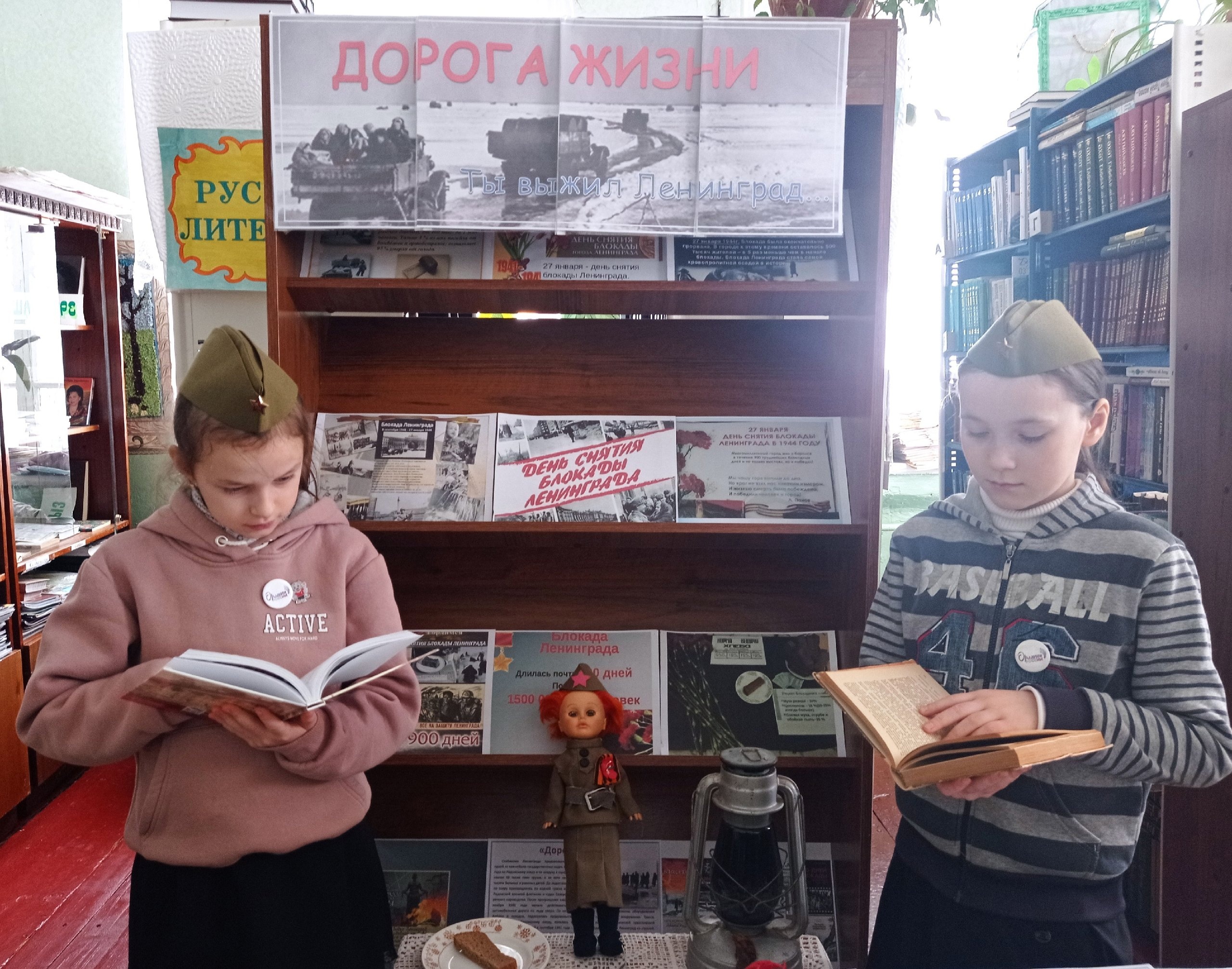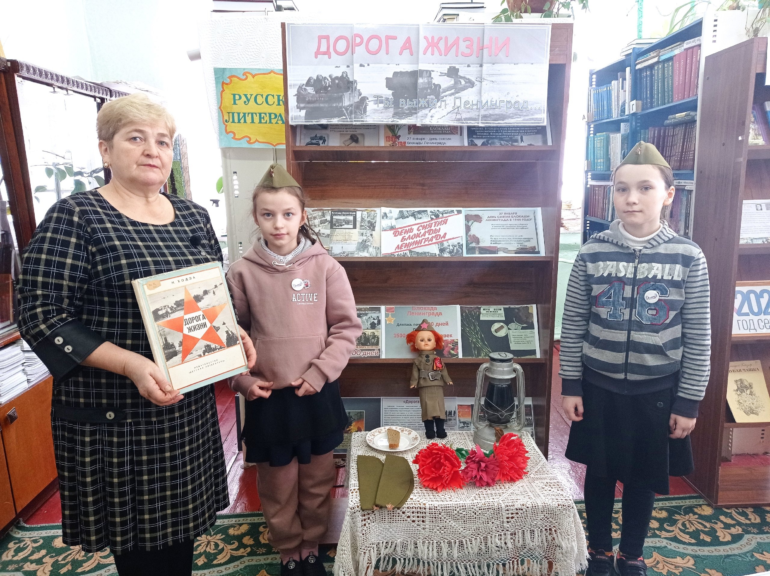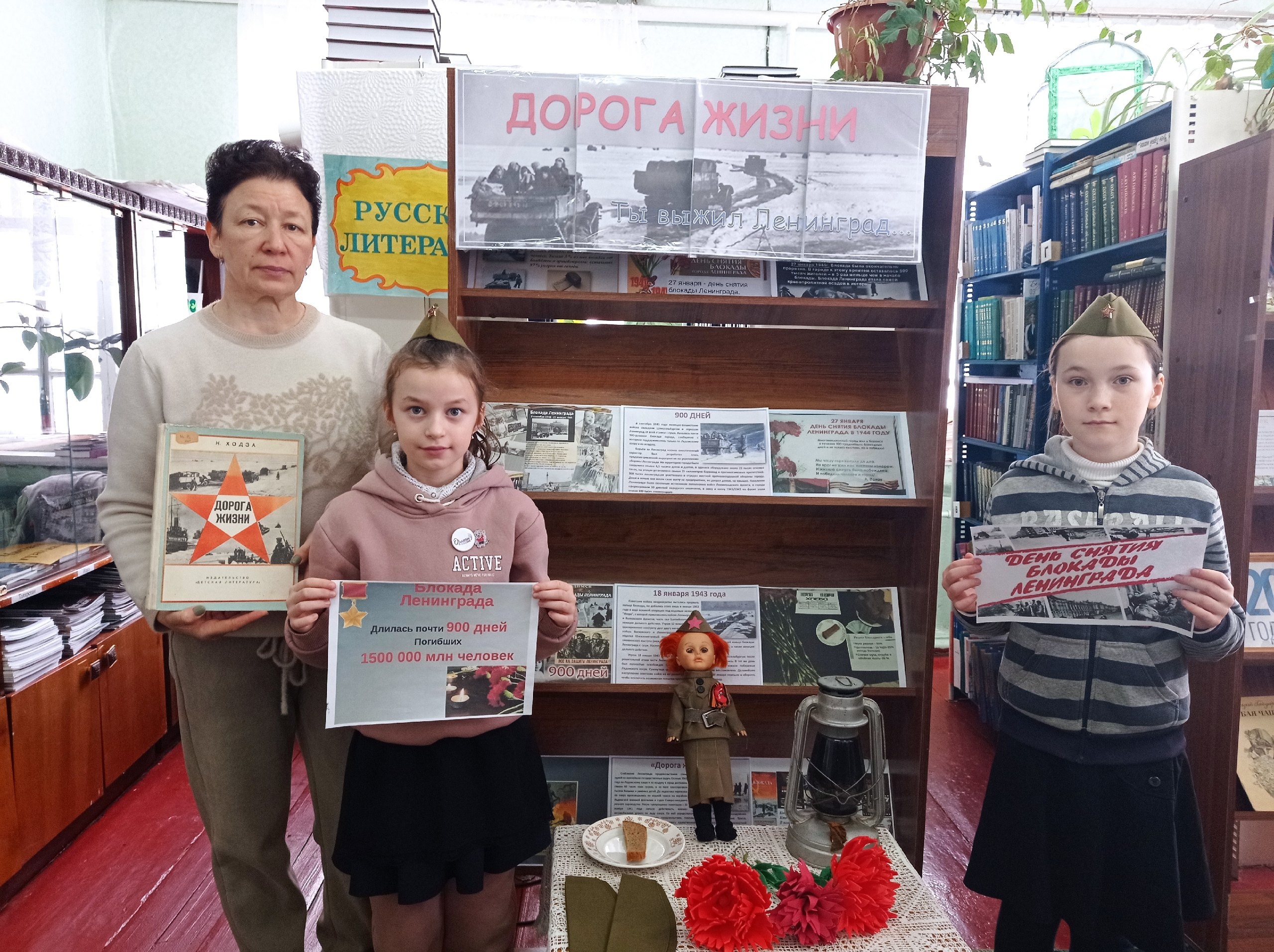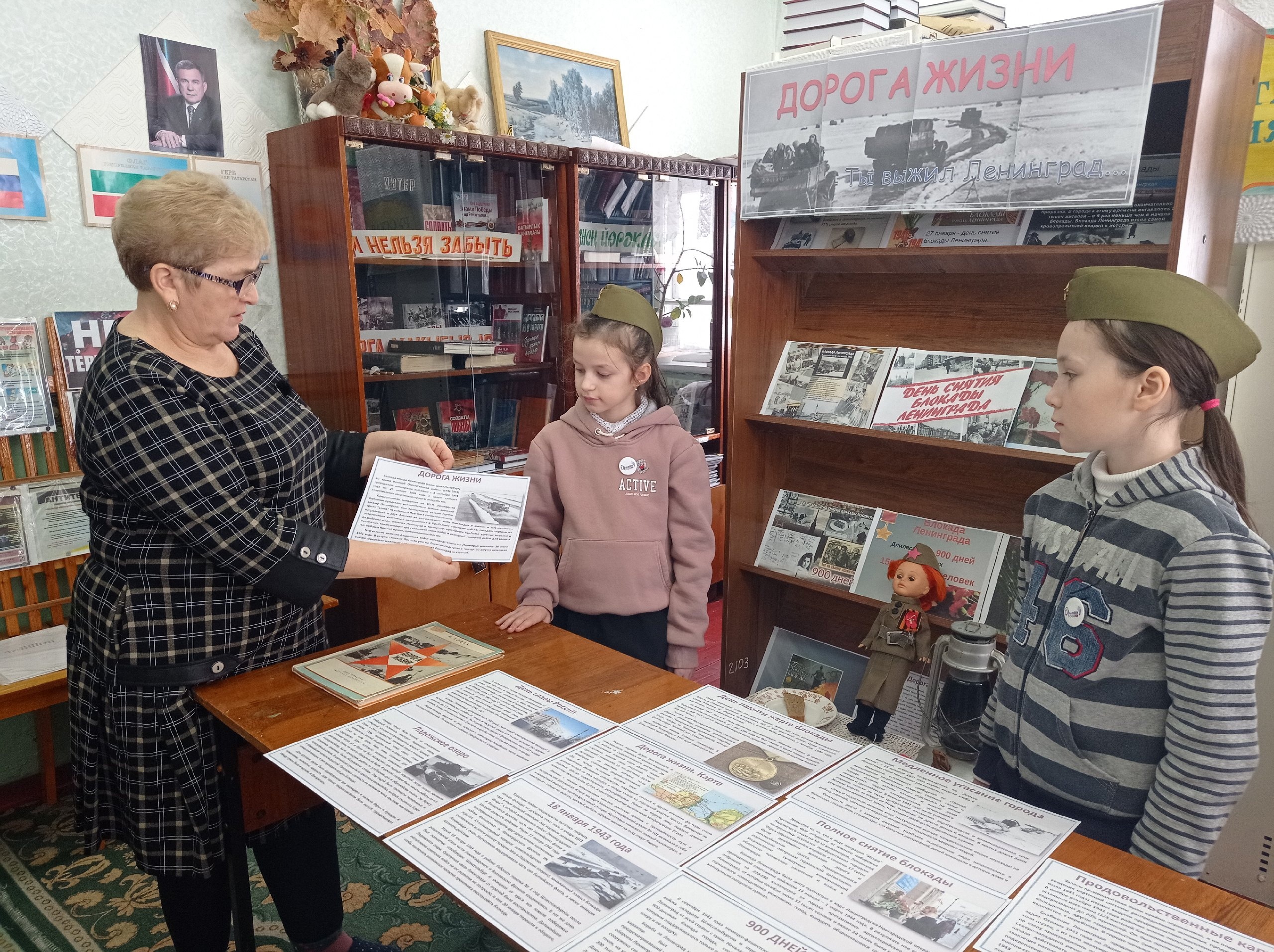 Библиотекарь рассказала о мужестве жителей города, которые преодолевая холод и голод, помогали нашим войскам, о том, что даже в такое тяжёлое время продолжали работать некоторые школы и библиотеки – люди приходили на встречи с писателями и поэтами, в это время была написана знаменитая седьмая симфония Д.Д. Шостаковича. Участники познакомились с «Блокадной книгой» А. Адамовича и Д. Гранина, узнали о Дороге жизни, связывающей блокадный Ленинград с советскими продовольственными базами.