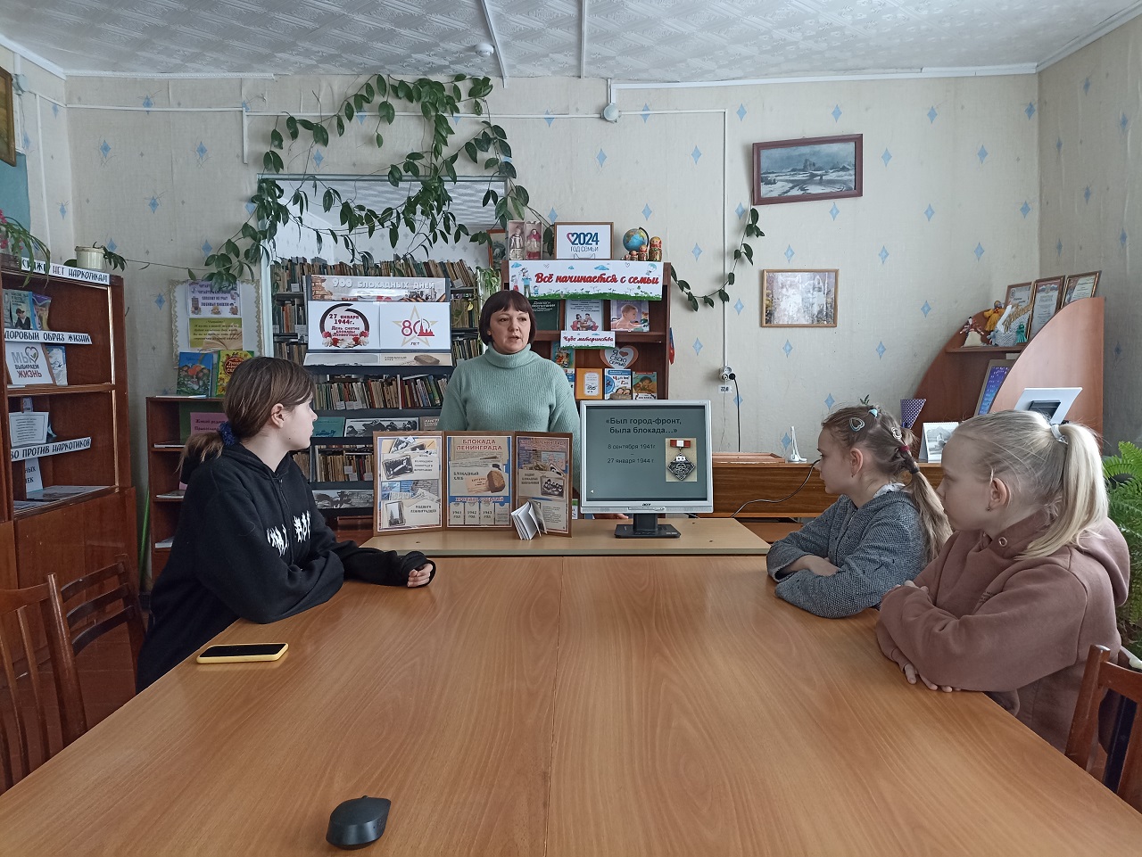 К 80-летию полного освобождения Ленинграда от фашистской блокады в Четырчинской сельской библиотеке для учащихся школы проведена слайд-беседа «Непокоренный Ленинград». С помощью электронной презентации было рассказано о 900 днях блокады, о стойкости и героизме жителей города, о несломленном духе народа, несмотря на голод, холод, обстрелы и бомбардировки.