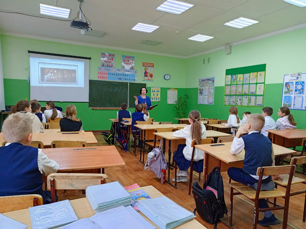 7 февраля в 4 «А» классе Школы № 4 прошёл урок памяти к 80 – летию полного снятия блокады Ленинграда – «В наших сердцах- Ленинград». Библиотекарь рассказала детям, что такое блокада, дети запомнили основные военные даты, разговор шёл о героическом народе города, которые работали, не смотря на голод и холод, о нормах хлеба, о детях, которые наравне с взрослыми работали в холодных цехах. Дети посмотрели документальный фильм и закрепили полученный материал. На уроке звучали патриотические стихи ленинградских поэтов: Веры Инбер, Ольги Бергольц. Проведённая, в конце урока, викторина по историческим датам, фактам, показала, что дети хорошо запомнили информацию по блокаде Ленинграда.
