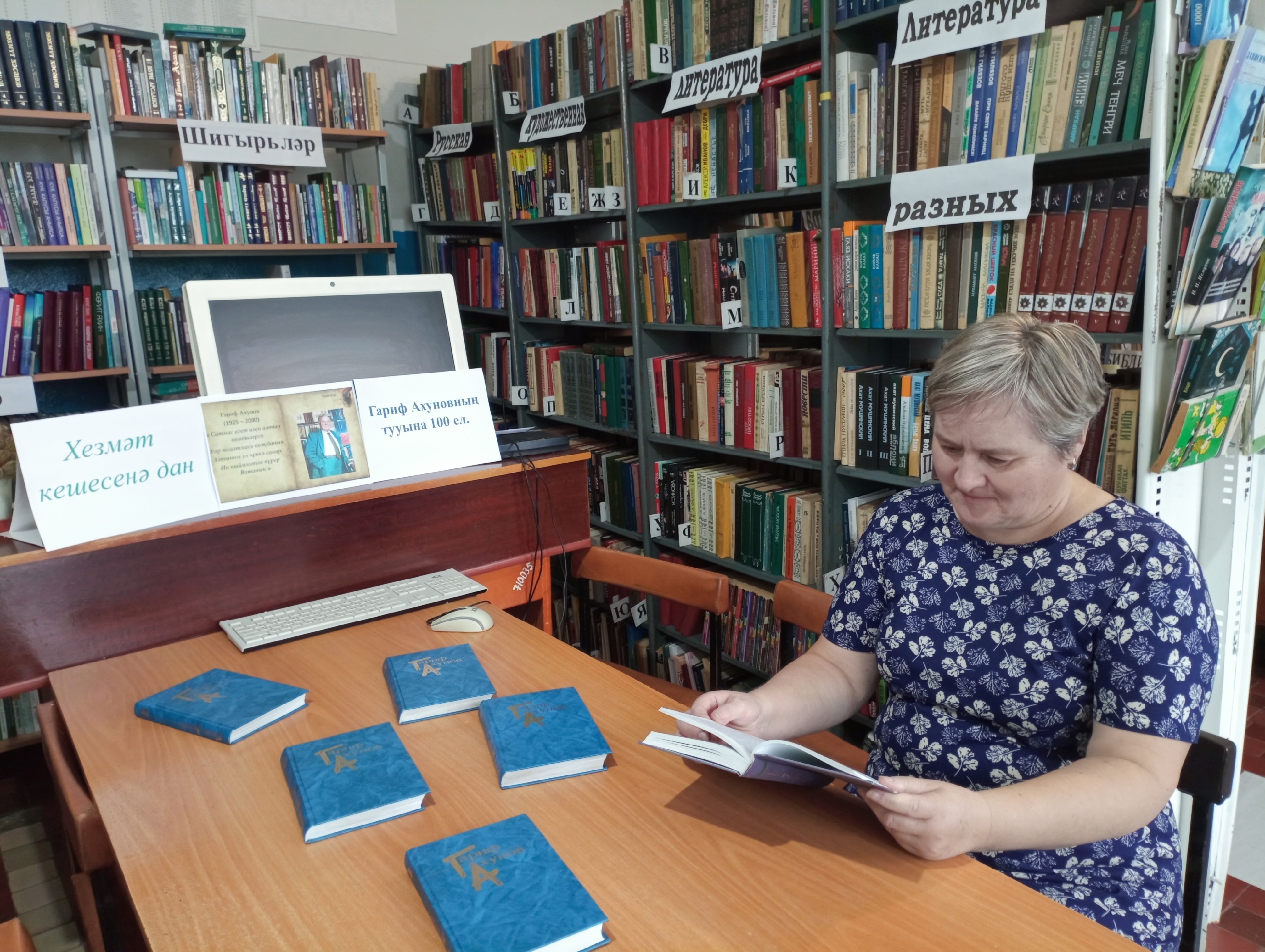 18 сентября 2025 года исполнился 100 лет со дня рождения татарского народного писателя, общественного деятеля и заслуженного деятеля искусств РСФСР Гарифа Ахунова. Гариф Ахунов известен не только как писатель, но и как драматург, переводчик, редактор, общественный и политический деятель. По творчеству писателя в Исляйкинской сельской библиотеке оформлена книжная выставка “Хезмәт кешесенә дан”. На выставке представлены все его книги. Читатели познакомились с биографией, творчеством Г.Ахунова, вспоминали и обсуждали прочитанные произведения Г. Ахунова. Они делились своими впечатлениями, рассуждали о проблемах, затронутых в его книгах. Особый интерес вызвала тема сохранения родного языка и культуры.