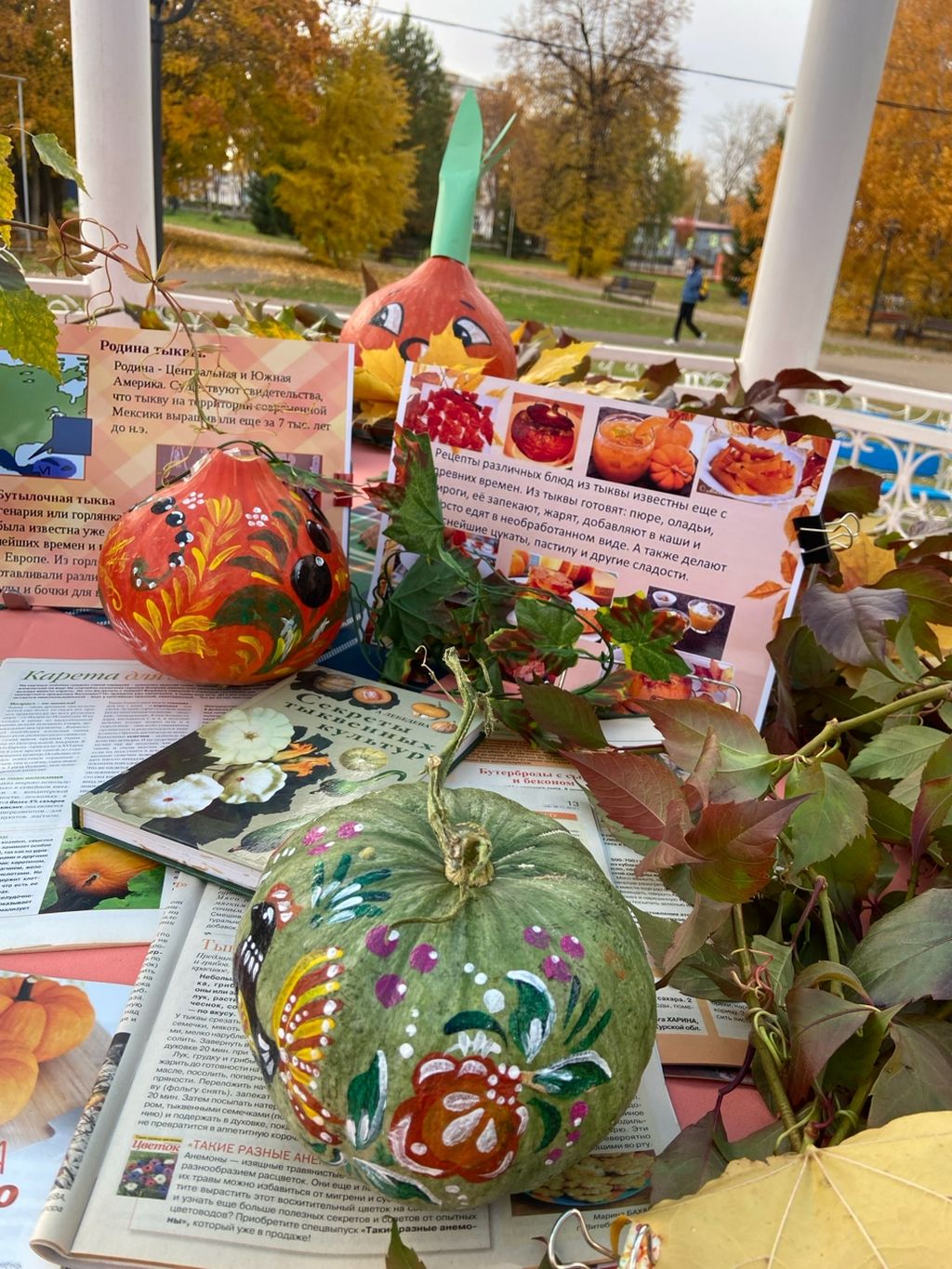 Сотрудники Чистопольской библиотеки подготовили фотозону и выставку «История тыквы: от семечки до сказки», а также провели викторину «Тыква — хлебосольница».