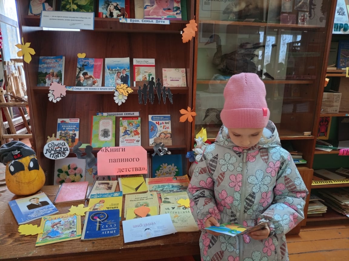 К мероприятию оформлена книжная выставка «Книги папиного детства». Истории о папах, представленные в книгах, рассказали детям о том, какие разнообразные роли приходится выполнять отцам в процессе воспитания своих малышей, какими качествами они должны обладать, какие приключения им случается переживать.