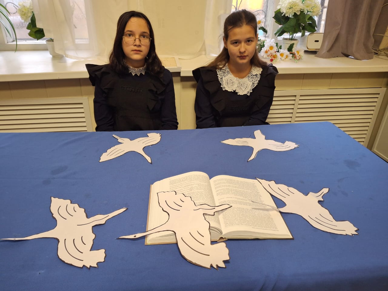 Рассказала детям о том, что журавли стали символом надежды, символом мира и памяти о тех, кто отдал свои жизни за будущее. Белые журавли — это символ светлой памяти о тех, кто не вернулся с поля боя, но навсегда остался в сердцах людей. Эта птица олицетворяет благополучие, мир, свет, добро и надежду на счастливое будущее. Акция направлена на сохранение памяти о героях и вдохновляет на мирное, светлое будущее.