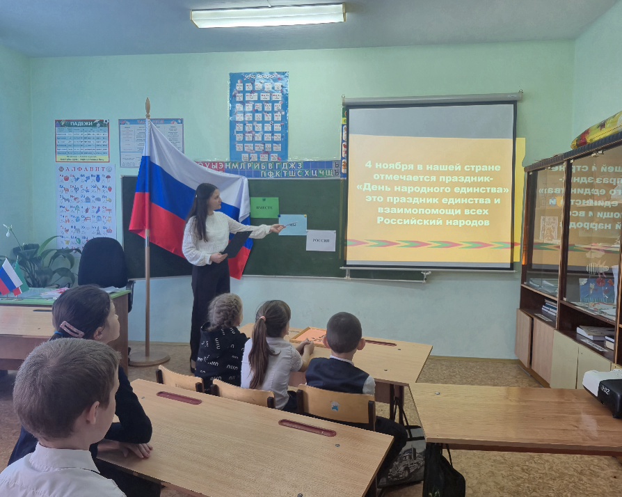 4 ноября наша страна празднует День народного единства, особенный праздник, объединяющий всех россиян. Именно в этот важный и символичный день Татарско-Елтанская сельская библиотека совместно с сельским Домом культуры организовали мероприятие в начальной школе.