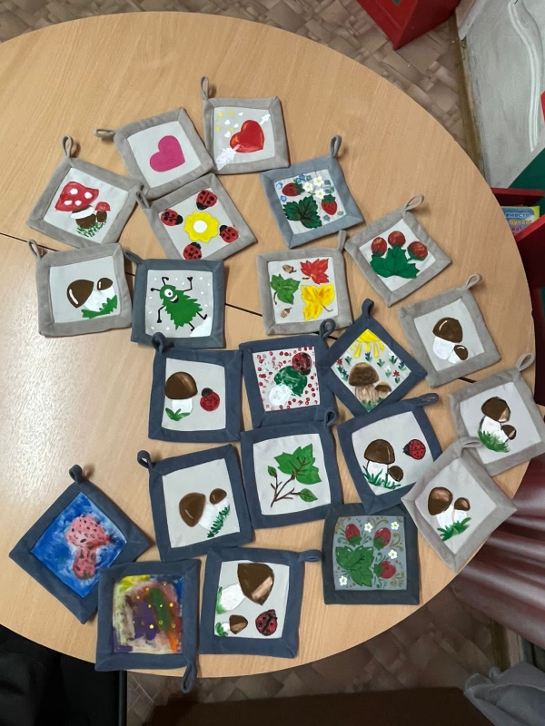 По доброй традиции, прошёл мастер-класс по росписи прихваток акриловыми красками, прихватки подготовила бабушка Диевой Эльзы — Роза Колчанова. Рассписывал каждый участник по своему желанию и настроению. А какие работы получились, ну просто загляденье!