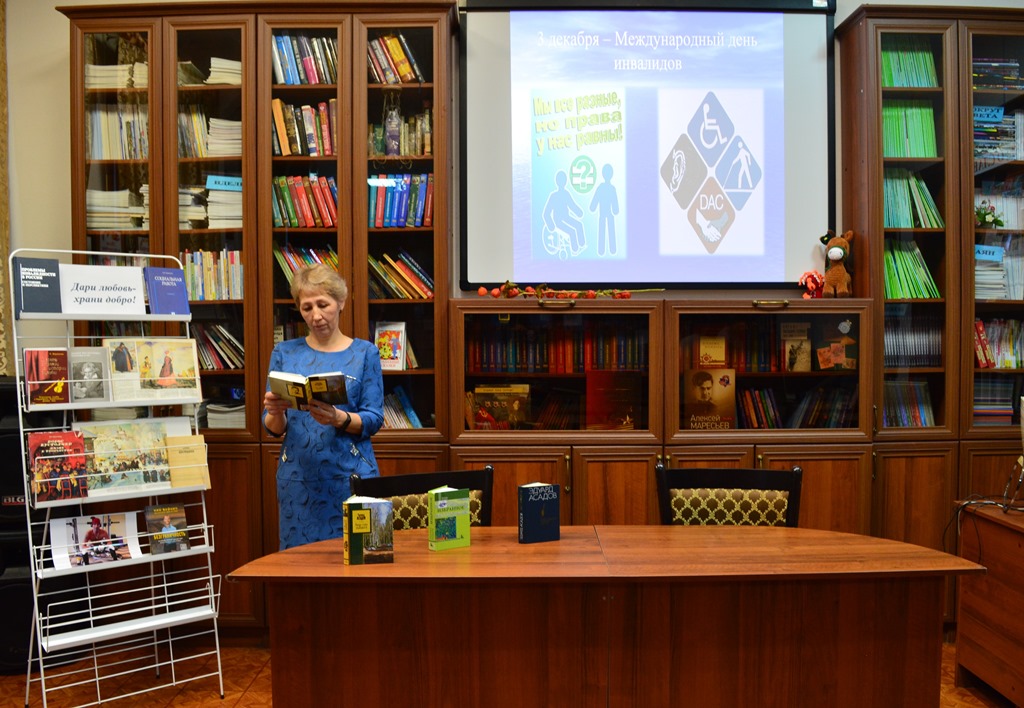 В рамках декады инвалидов сотрудники Центральной библиотеки провели особенное мероприятие, литературно- музыкальный час «Дари любовь – храни добро», посвященный тем, кто несмотря на тяжелые испытания судьбы, создавали шедевры в различных областях искусства, культуры: