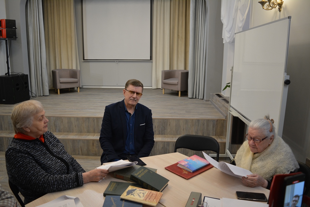 О военном периоде жизни, и о патриотических стихах рассказала ветеран педагогического труда Мира Максимова. Музыкант Александр Луньков исполнил три песни на стихи Константина Ваншенкина: «Как провожают пароходы», «Алёша», «Я люблю тебя, жизнь!».Прозвучали в записи и другие известные песни этого автора, а участники встречи, под звуки знакомых мелодий, дружно подпевали известным исполнителям.