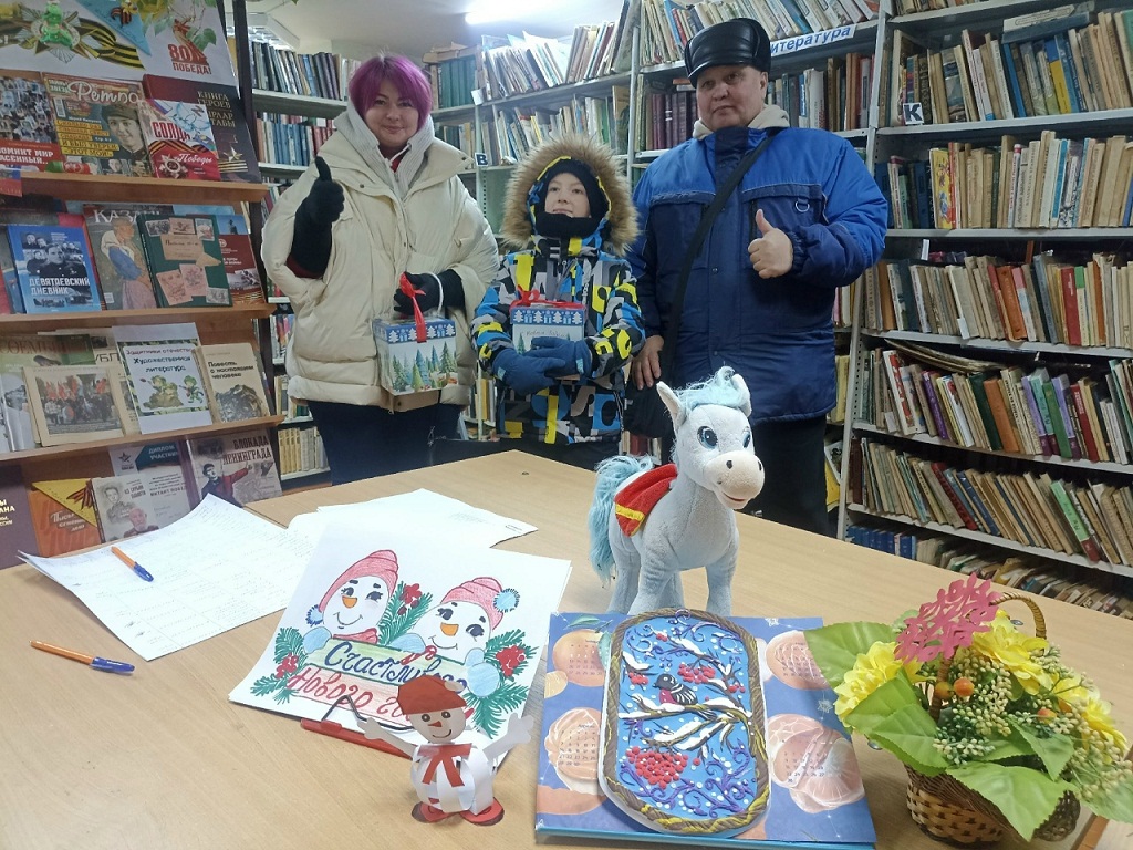 В начале мероприятия участники торжественного открытия новогодней ёлки посетили городскую библиотеку филиал №3 , получили приглашение на мастер-класс «Новогодние фантазии»