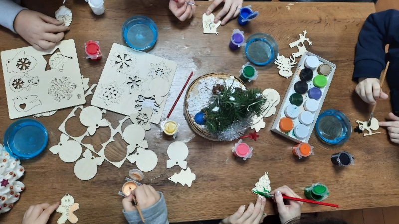 В уютной атмосфере ребята окунулись в мир творчества и фантазии. Перед ними предстали загадочные деревянные заготовки ёлочных игрушек, ожидающие своего часа стать настоящими произведениями искусства. Каждый ребёнок творил свою уникальную игрушку, используя краски разных оттенков и декоративных элементов.