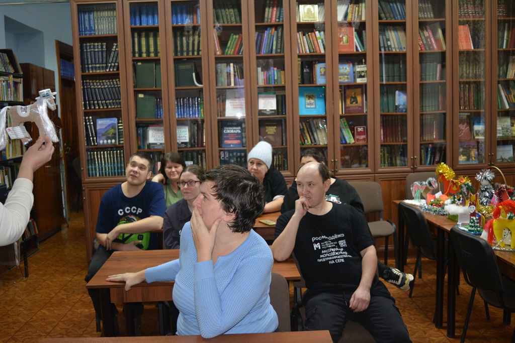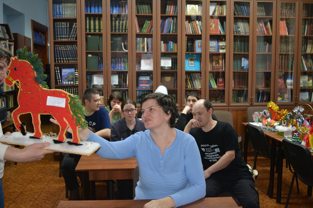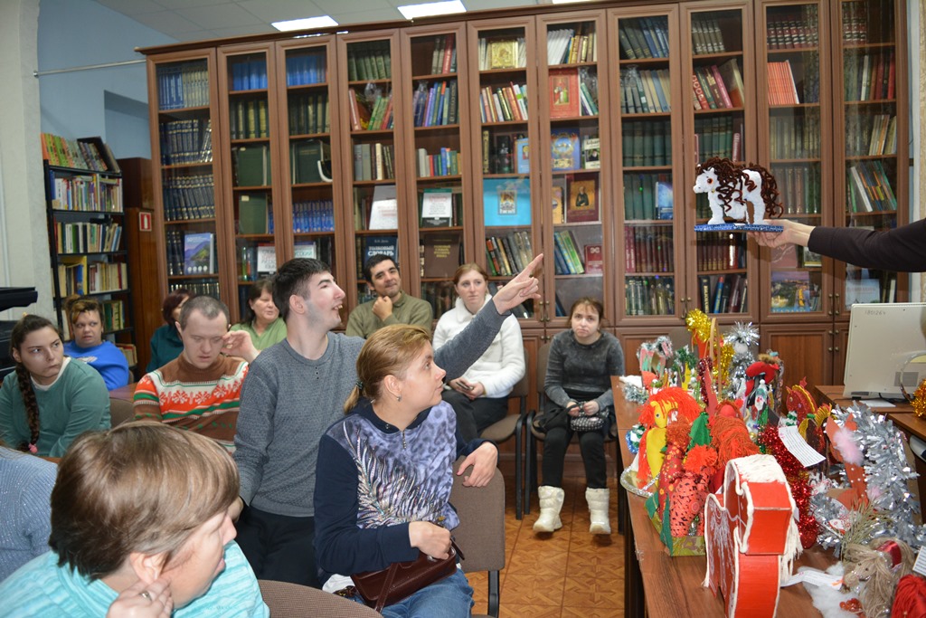 Центральную библиотеку с экскурсией посетили две группы воспитанников реабилитационного центра «Балкыш». Ребята пришли посмотреть выставку «Символ нового года своими руками», которая посвящена году Красной Огненной Лошади, как символу импульса, свободы, решимости и неукротимого стремления вперед.Все поделки, представленные на конкурсе, были изготовлены с душой. Они поражали своей неповторимостью и яркостью, разнообразием материала. Участники конкурса проявили творчество, фантазию и мастерство. Работы ребятам очень понравились, в их глазах читались неподдельный интерес и внимание. Они с удовольствием слушали и рассматривали лошадок, задавали вопросы, придумывали имена понравившимся поделкам. В конце мероприятия ребята посмотрели новогодние мультфильмы.