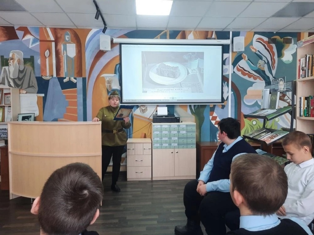 Читатели увидели кадры кинохроники тех лет, которые рассказали о тяжёлых испытания, выпавших на долю осажденного Ленинграда: о голоде и холоде, о детях о защите и обороне города советскими солдатами. Презентация «Героическая эпоха Ленинграда «на которых застыли на фото ополченцы, уходящие на фронт, ученики решающие задачи в бомбоубежищах, грузовики с продовольствием едущие по Дороге жизни. Прочли стихи поэтессы Ольги Берггольц, а в завершении почтили память минутой молчания.