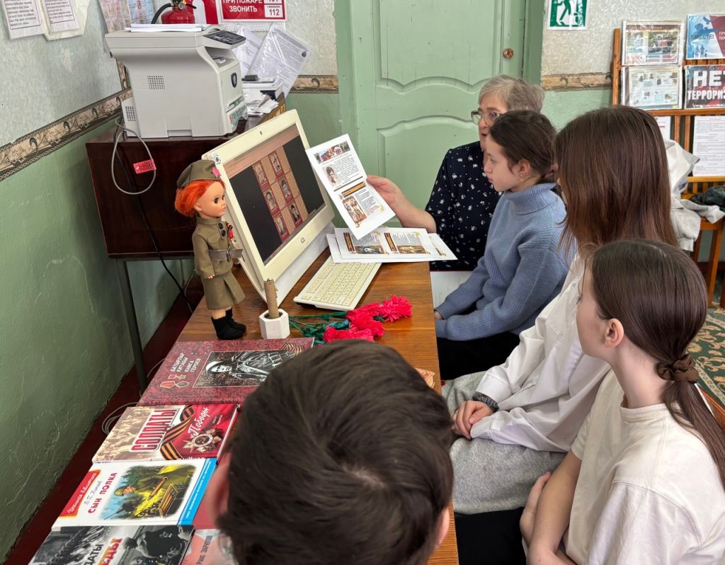 Патриотический час сопровождался показом видео — презентации «Юные герой в нашей памяти живут» и обзором книг, представленных на выставке. Дети познакомились серией книг о пионерах-героях, сборниками о Великой Отечественной войне и другими материалами. Пионеры-герои остались частью советского прошлого, начинавшегося с книг и телефильмов о юных партизанах. Эти 13-17-летние погибали по-настоящему. Кто-то подорвал себя последней гранатой, кто-то получил пулю от наступающих немцев, кого-то повесили во внутреннем дворе тюрьмы. Эти ребята, для которых слова «патриотизм», «подвиг», «доблесть», «самопожертвование», «честь», «родина» являлись абсолютными понятиями, заслужили право на все. Кроме забвения.