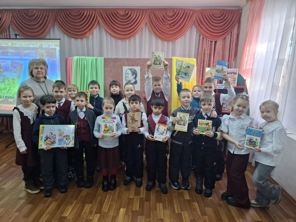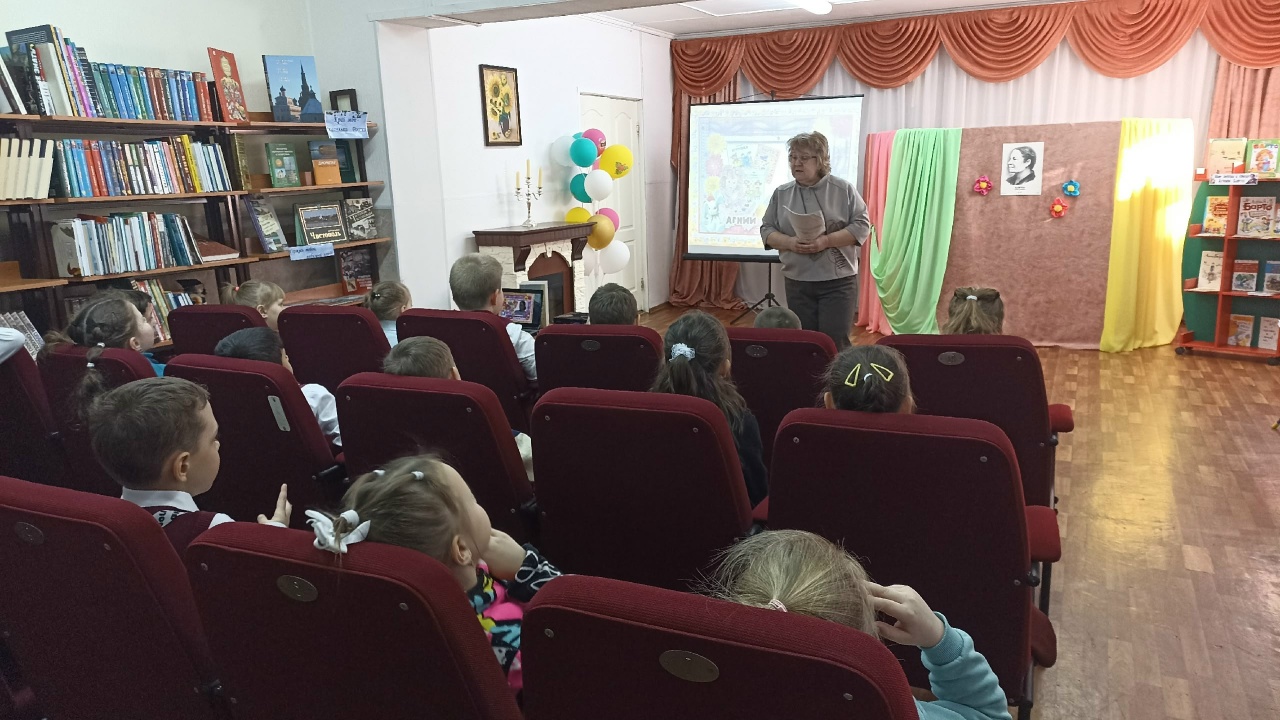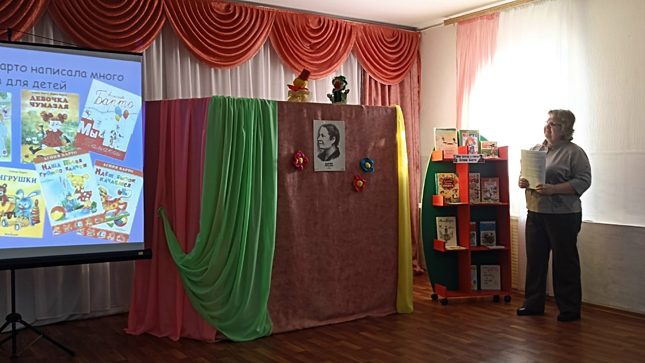 К 120-летию со дня рождения поэтессы Агнии Барто Центральная детская библиотека провела литературный час «В стране веселого детства». В ходе мероприятия ребята узнали интересные факты из жизни и творчества поэтессы, познакомились со многими сборниками стихов, отвечали на вопросы викторины, где ребята по отрывкам произведений угадывали его название, отгадывали загадки-путаницы, с удовольствием читали ее весёлые, задорные и добрые стихотворения из сборника «Игрушки»: «Мишка», «Бычок», «Мяч», «Кораблик», «Машенька», «Дом переехал», «Помощница». В конце мероприятия дети обсудили произведения и посмотрели мультфильм «Снегирь». Вниманию детей была представлена яркая книжная выставка стихов А.Барто, где ребята с интересом рассматривали книги со стихами и красивыми иллюстрациями. На мероприятии присутствовало 25 человек.