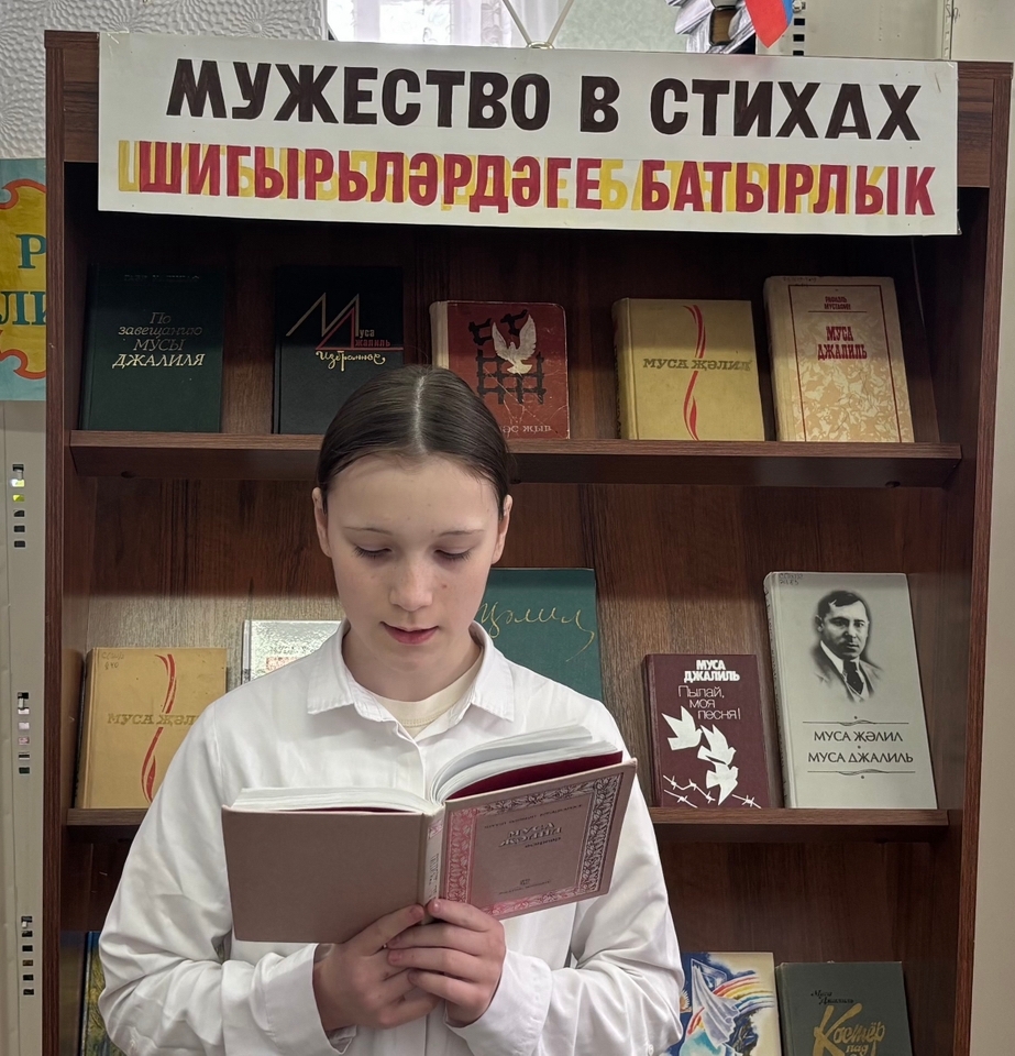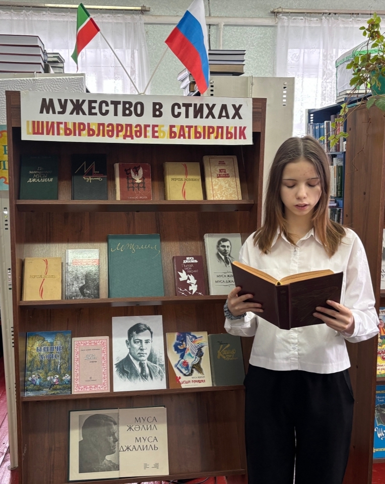 Его имя стало олицетворением гуманизма, символом мужества. Из рассказа библиотекаря участники мероприятия услышали о детских и юношеских годах Мусы Джалиля, о том, что будущий поэт с детства мечтал писать стихи.
