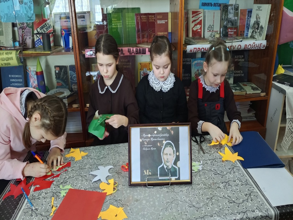 С юными читателями Нижнекондратинской сельской библиотеки провела мастер класс национальные татарские узоры, для оформления книжной выставки «Волшебный мир Тукая».