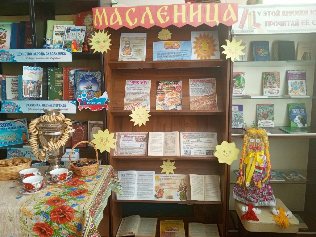 К масленичной неделе в Чувашско-Елтанской сельской библиотеке была оформлена книжная выставка «Масленица». Литература, представленная на выставке поможет узнать все о Масленичной неделе и традициях русского праздника, почему пекут блины и сжигают чучело, в каких странах ещё отмечается этот праздник. Но праздник — это не только игры. Посетители с большим интересом слушали историю о русских масленичных традициях и обычаях наших предков, народных приметах и, конечно, о символе Масленицы – блинах.