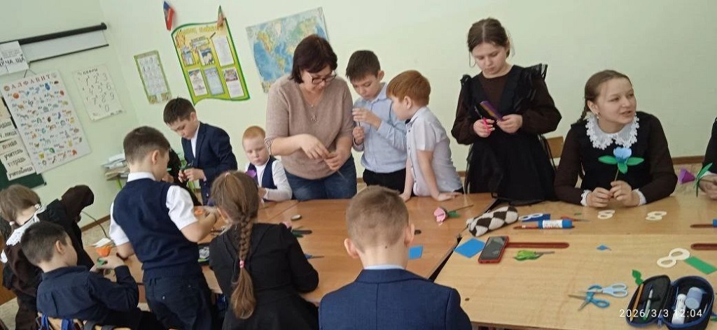 Приближается замечательный праздник — Международный женский день 8 Марта! . Это день, когда мы выражаем свою любовь и благодарность самым важным женщинам в нашей жизни — нашим мамам, бабушкам и сестрам. В честь этого праздника Муслюмкинская сельская библиотека провела мастер-класс «Подарок маме» для начальных классов . На нашем мастер-классе каждый ребенок смог создать уникальный и оригинальный подарок для своих мам. Атмосфера в классе была теплой и дружеской. Ребята помогали друг другу и советовались как сделать поделки красивее. У каждого получился уникальный и неповторимый подарок, который они смогут вручить своим мамам, бабушкам и сестрам на праздник. Мастер-класс прошел весело и плодотворно, подарив детям радость творчества и хорошее настроение.
