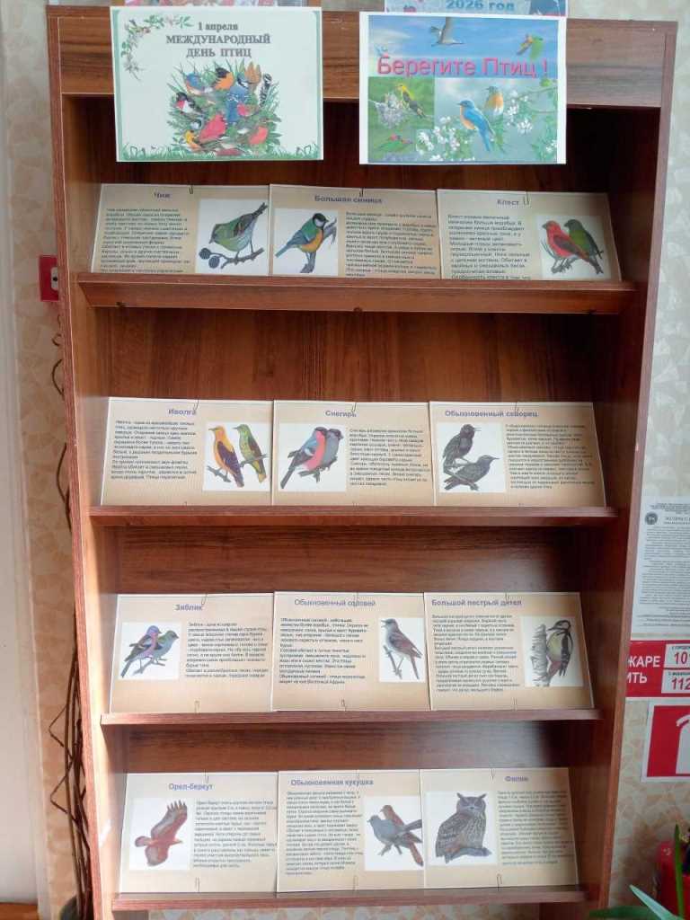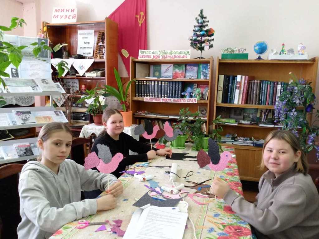 В Данауровской сельской библиотеке филиал № 11 к Международному дню птиц прошла игра – викторина «Пернатые – хвостатые». Не случайно этот день празднуют именно в апреле. Ведь в данном месяце возвращаются домой перелётные птицы. Ребята узнали, что птиц на земле столько, что не хватит и целой жизни, чтобы их пересмотреть. Участники ответили на вопросы викторины, разгадали загадки, угадали птиц по описанию, подобрали вторую часть пословицы. Посмотрели описание птиц на выставке экспозиции «Берегите птиц». В рамках кружка «Умелые ручки» прошёл мастер класс «Птичка».