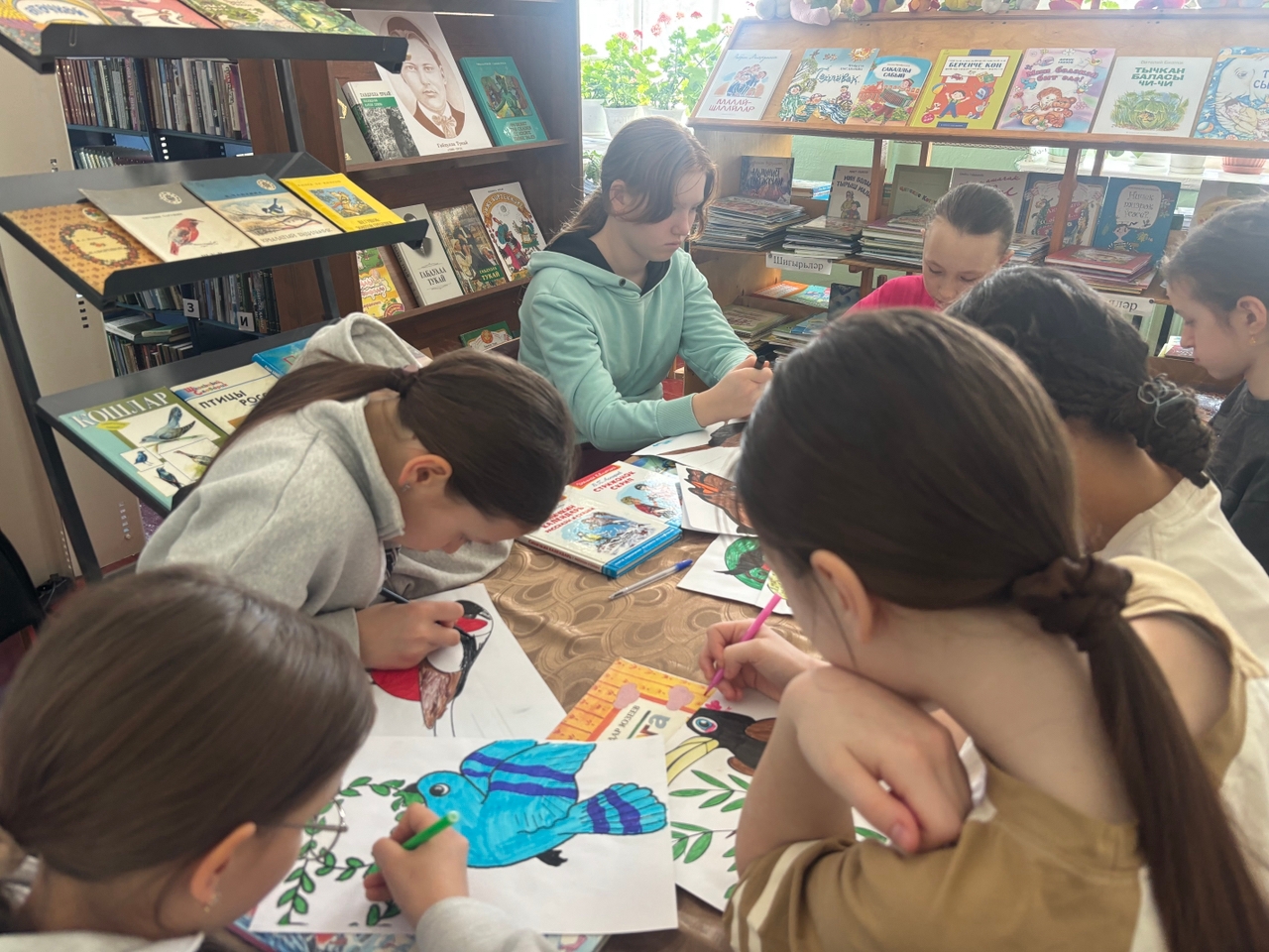 Рисовали своих любимых птиц.Из подготовленной выставки взяли понравившиеся книги про птиц дома почитать.