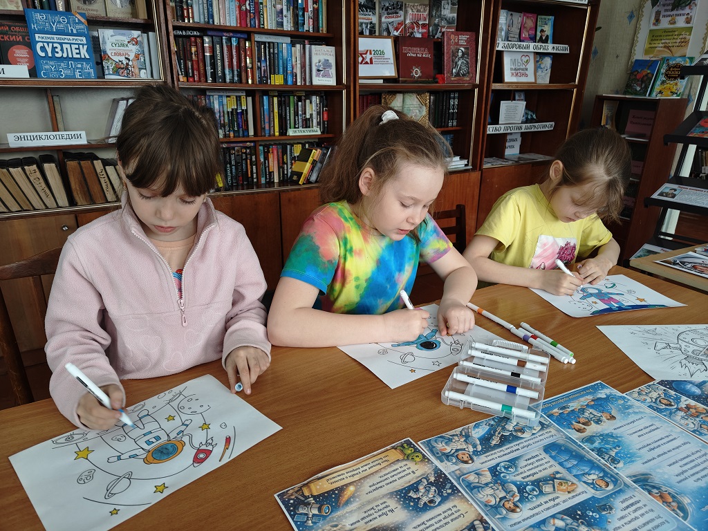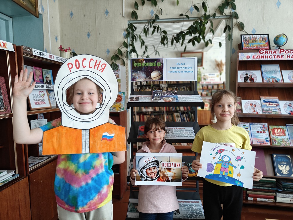 12 апреля наша страна отмечает День космонавтики. 65 лет назад Юрий Гагарин сказал: «Поехали!» и на корабле «Восток-1» совершил первый в истории виток вокруг Земли. В честь этого события в Четырчинской сельской библиотеке прошёл познавательный час «Космос – дорога без конца». Юные читатели прослушали информацию об истории возникновения праздника, о Юрии Алексеевиче Гагарине – человеке, покорившем космическое пространство, о Валентине Терешковой – первой женщине-космонавте. С помощью слайд — презентации ребята смогли окунуться в загадочный мир звёзд и планет, познакомиться с историей освоения космоса. Узнали о первых покорителях звёздного неба, о первых животных, проложивших дорогу в космос, а также о том, как проходит подготовка к полётам, чем питаются космонавты в невесомости и какие навыки и умения нужны для того, чтобы отправиться к звёздам. Дети познакомились с интересными книгами о космосе, раскрасили тематические рисунки, а в конце мероприятия примерили на себя образ космонавта. Мероприятие прошло познавательно и интересно, ребята смогли расширить свой кругозор в области космической науки.