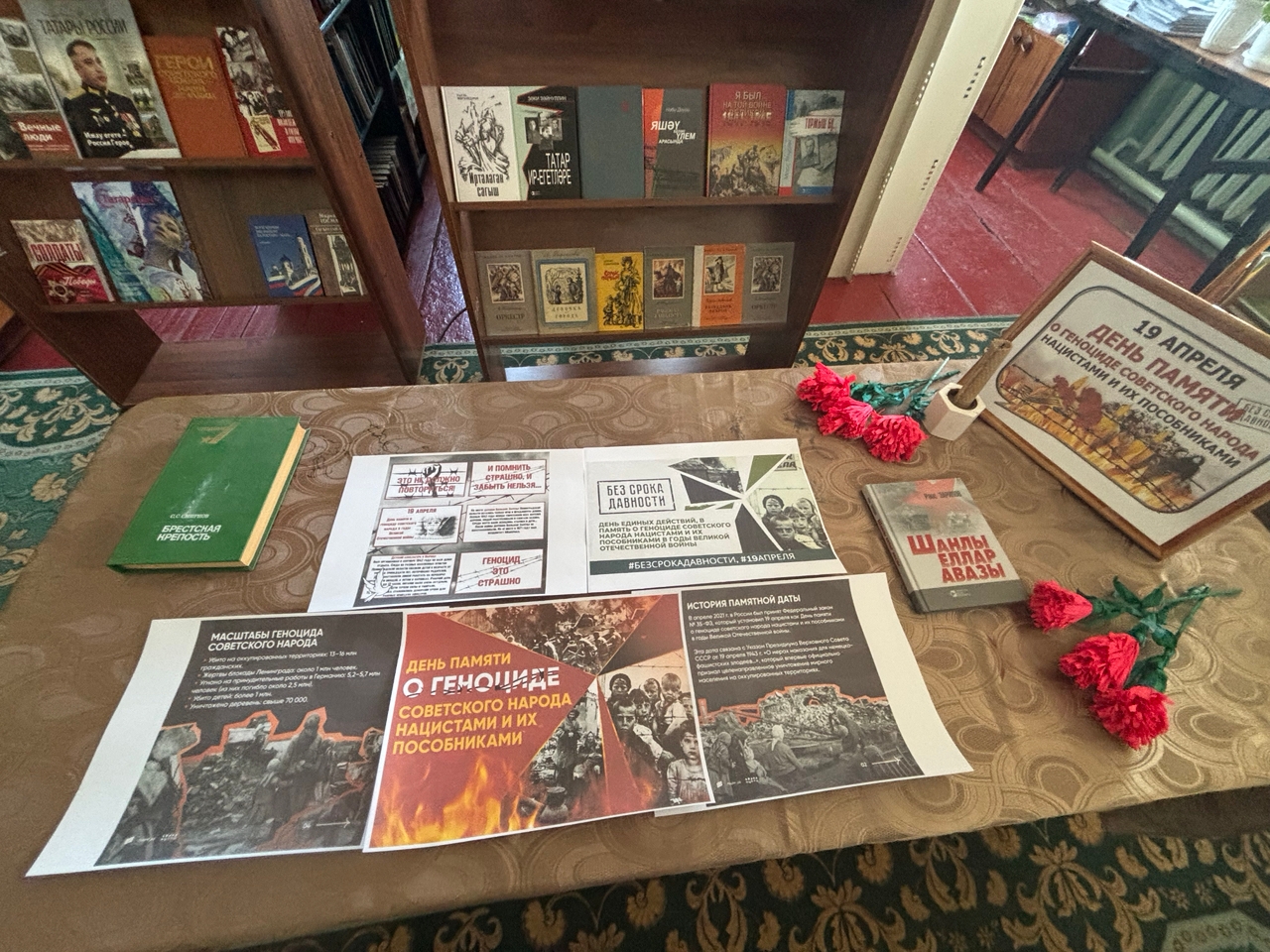 День памяти жертв геноцида. 19 апреля по всей стране проводится День единых действий в память в геноциде советского народа нацистами и их пособниками в годы ВОВ. В рамках этой памятной даты в Кзыл Яланской сельской библиотеке проведен час памяти «Человек лишь памятью храним». В ходе мероприятия читателям разъяснили понятия «геноцид», «нацизм» и чем они отличаются от военных боевых действий и террористических актов, узнали о фактах массового уничтожения мирного населения фашистами, о лагерях смерти, о том, как ни в чем неповинные люди стали жертвами преступлений нацистов.