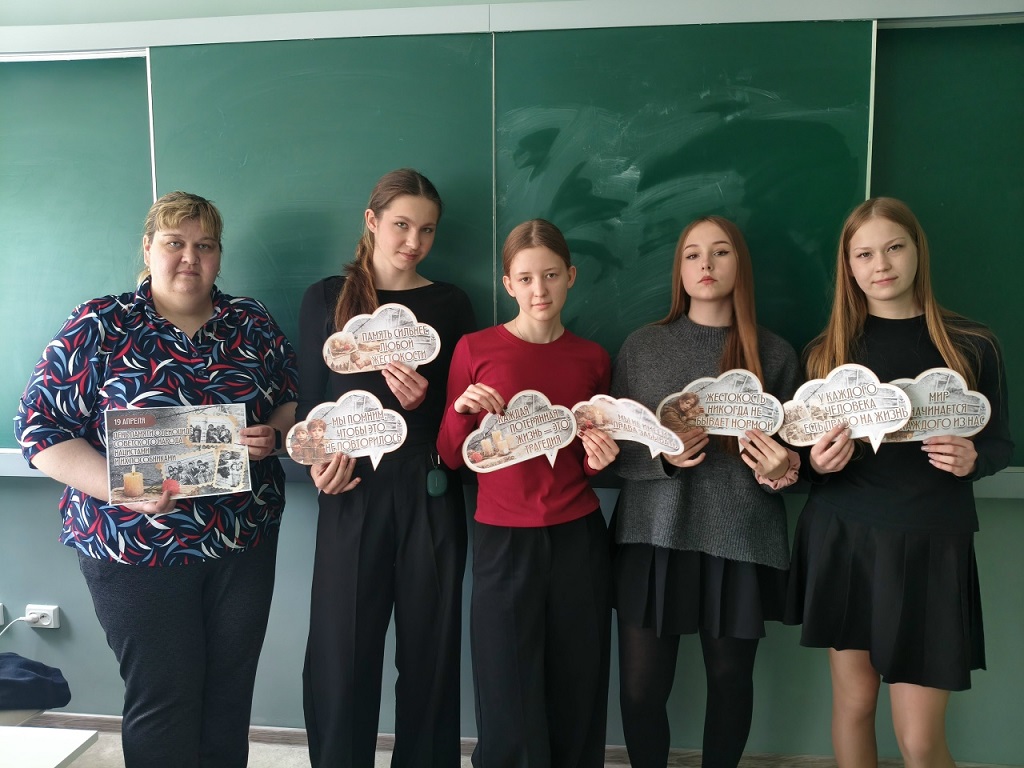 Поговорили о трагических днях войны, обсудили, как важно сохранить историческую память и не дать новым поколениям забыть все ужасы военного времени, так же ребята узнали, почему этот день отмечается именно 19 апреля.
